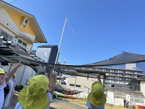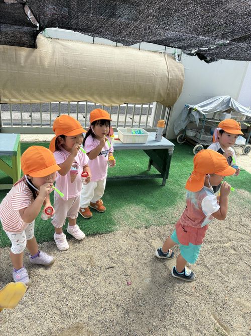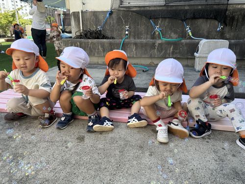 風が気持ちよく、子どもたちの吹くシャボン玉が空に舞い上がっていきました!