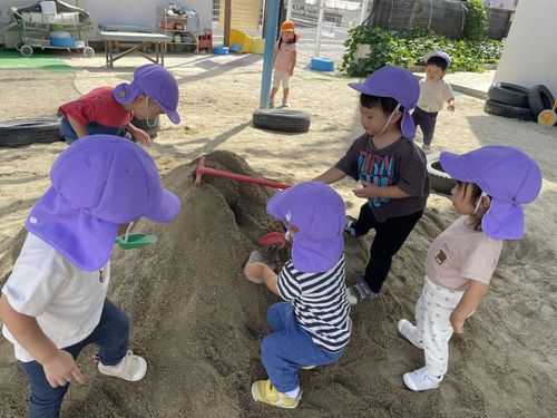大きい山を見つけた。みんなで山をくずしてみようかな?