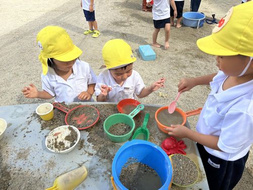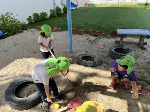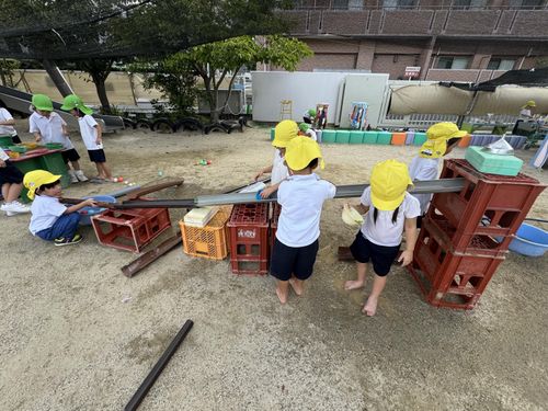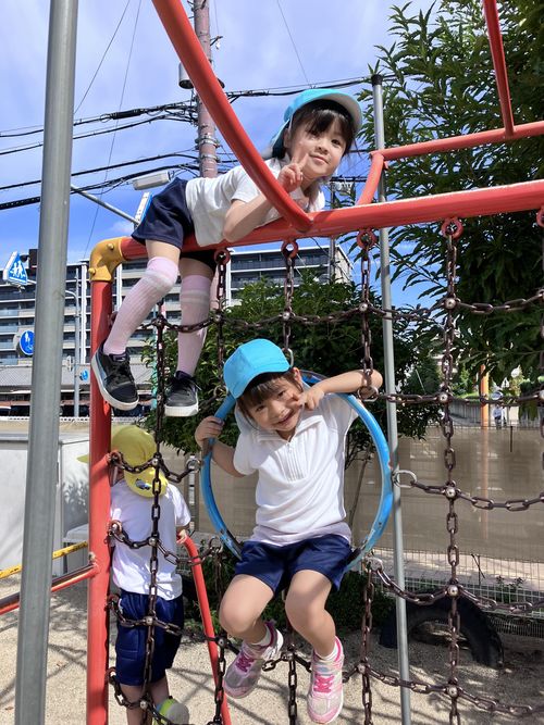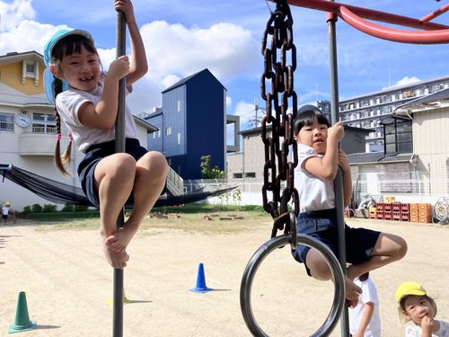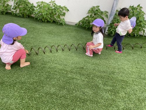 園庭では、いろいろなことを発見したり「やってみよう!」と試したりしています。