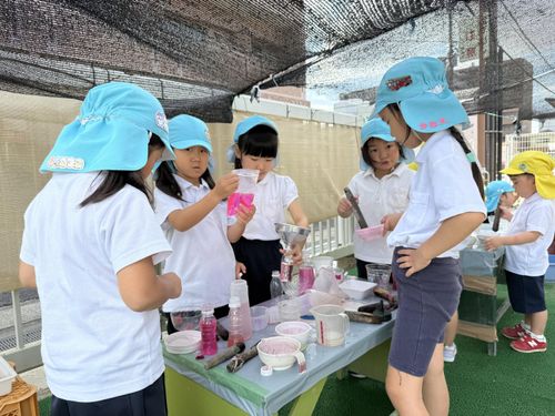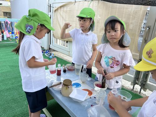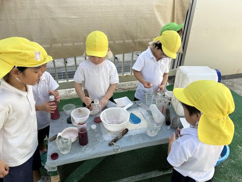 色水遊びでは、ぶどうジュースやにんじんジュース等ができました。