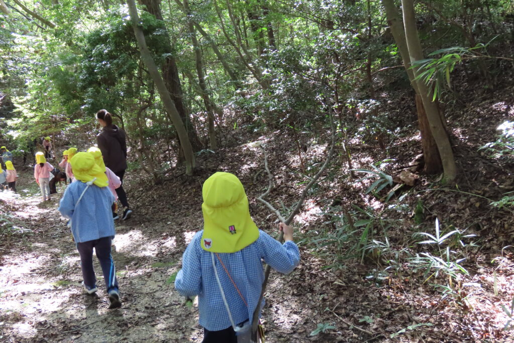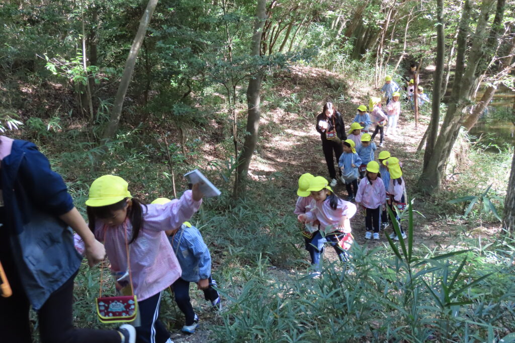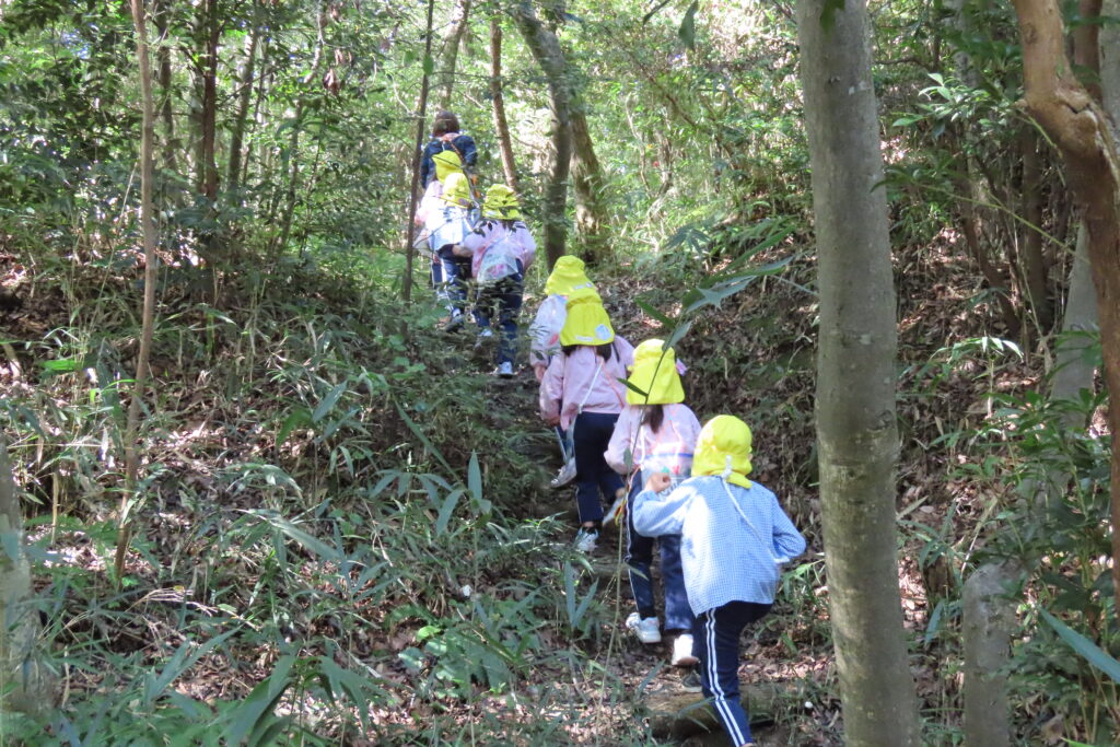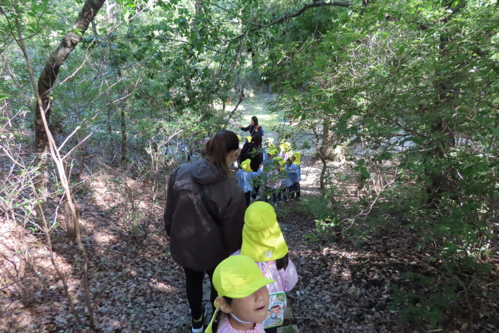 「秋の森って、前に来た時(5~6月)とは、どう違うのかな?」と、みんなで森の中に入っていきました。