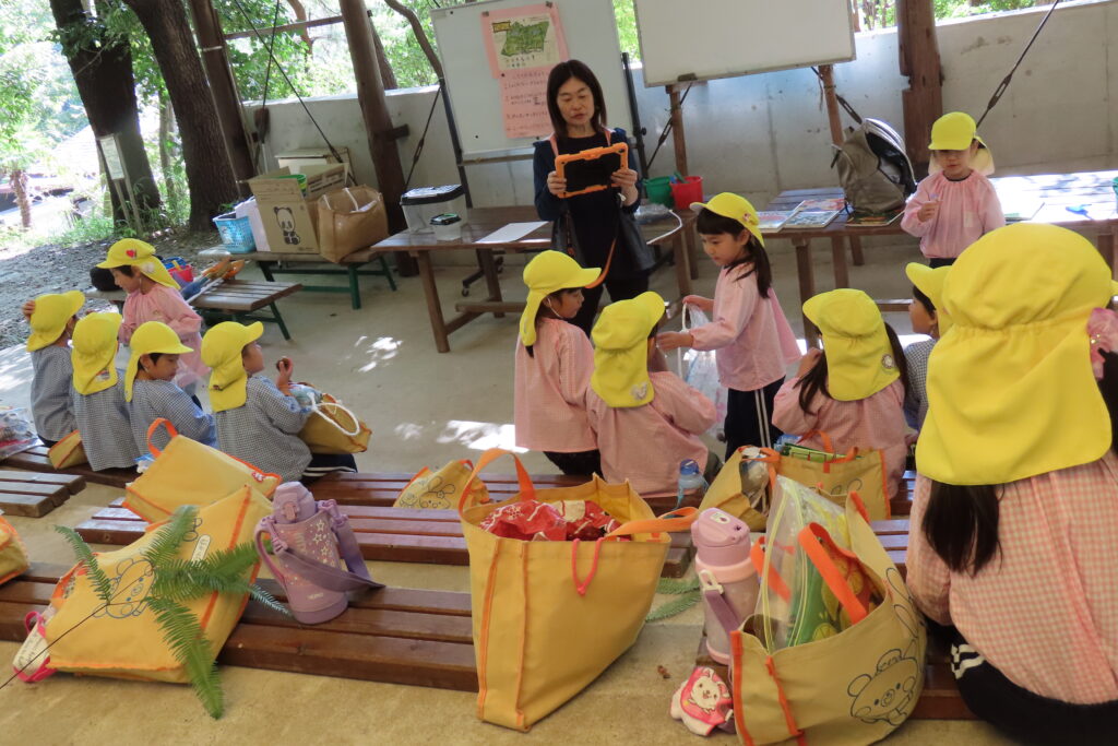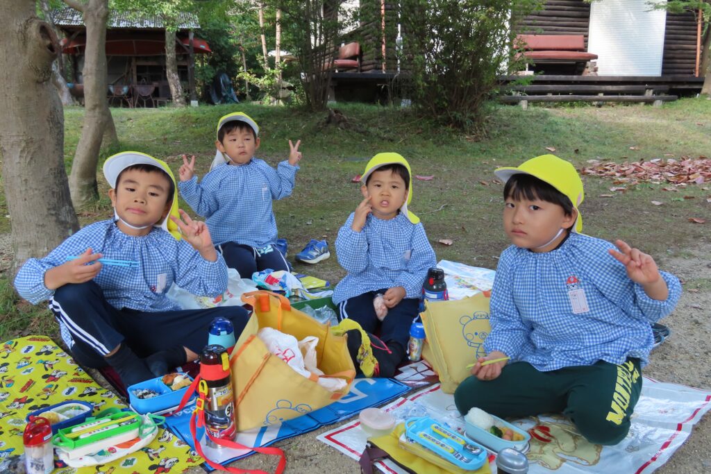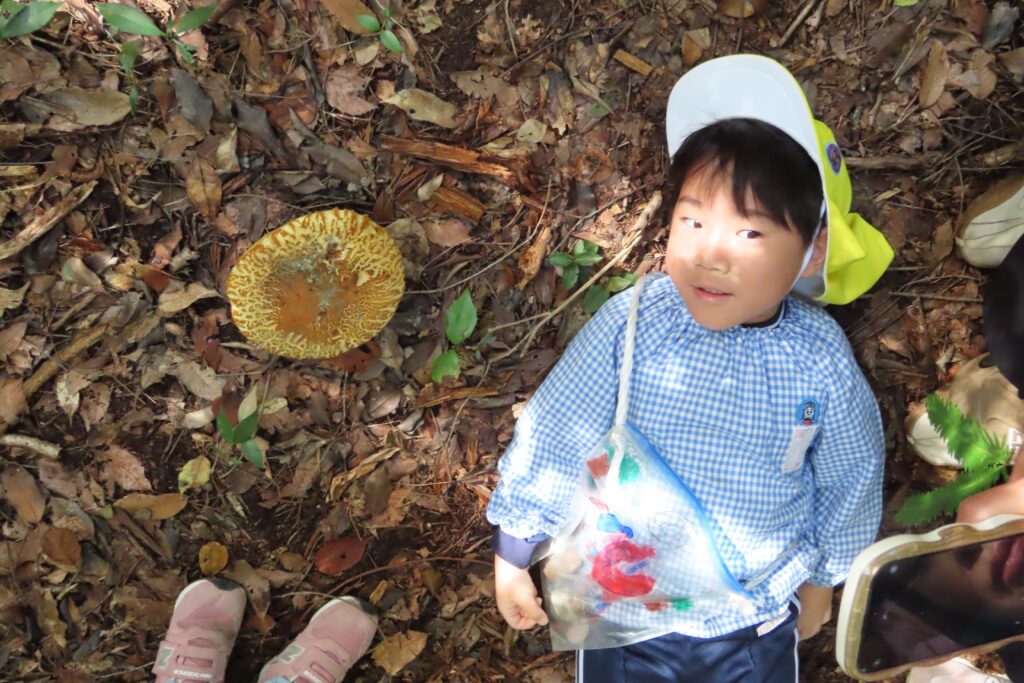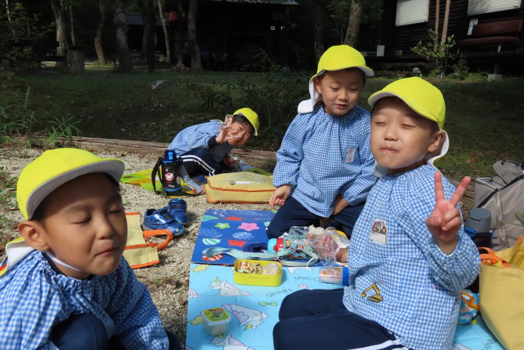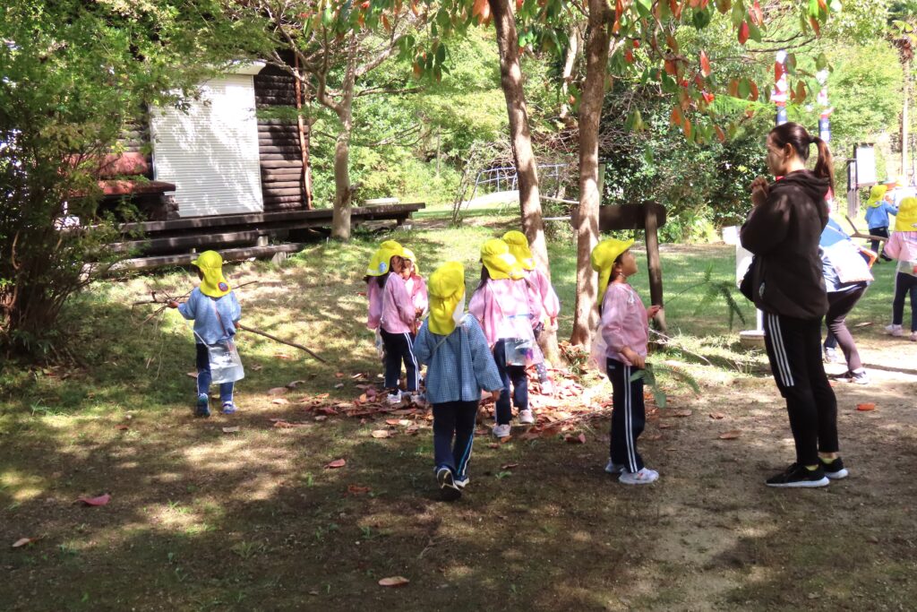 今朝は最低気温が10度を下回り、一気に「秋」を感じる一日となりました。年長「つき組」さんは、秋の森の教室の第1回目。黒髪山キャンプフィールドに出かけてきました。