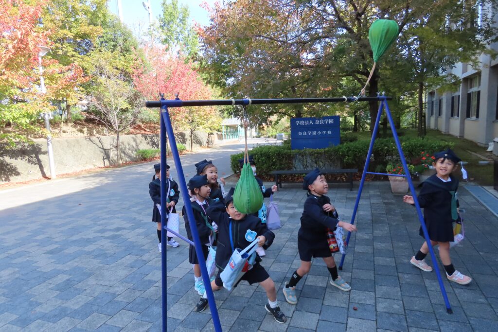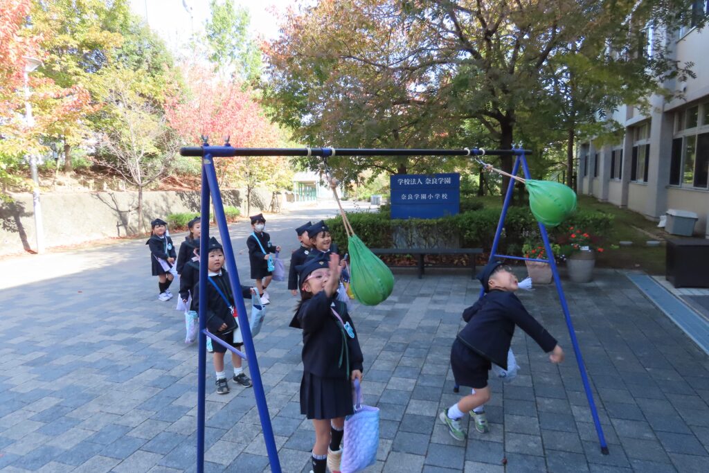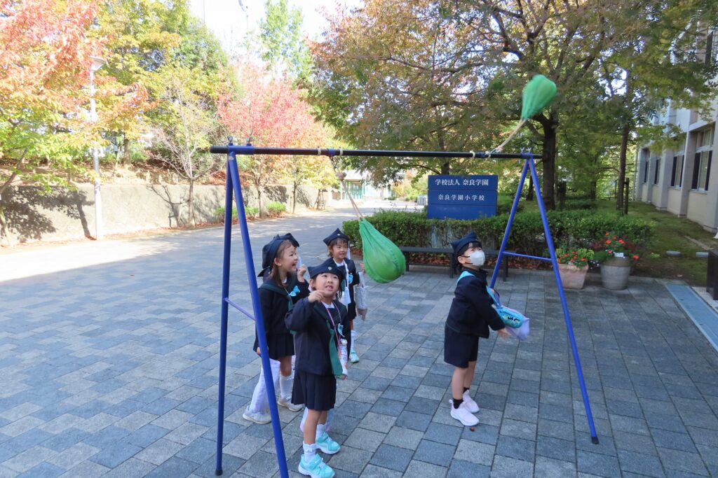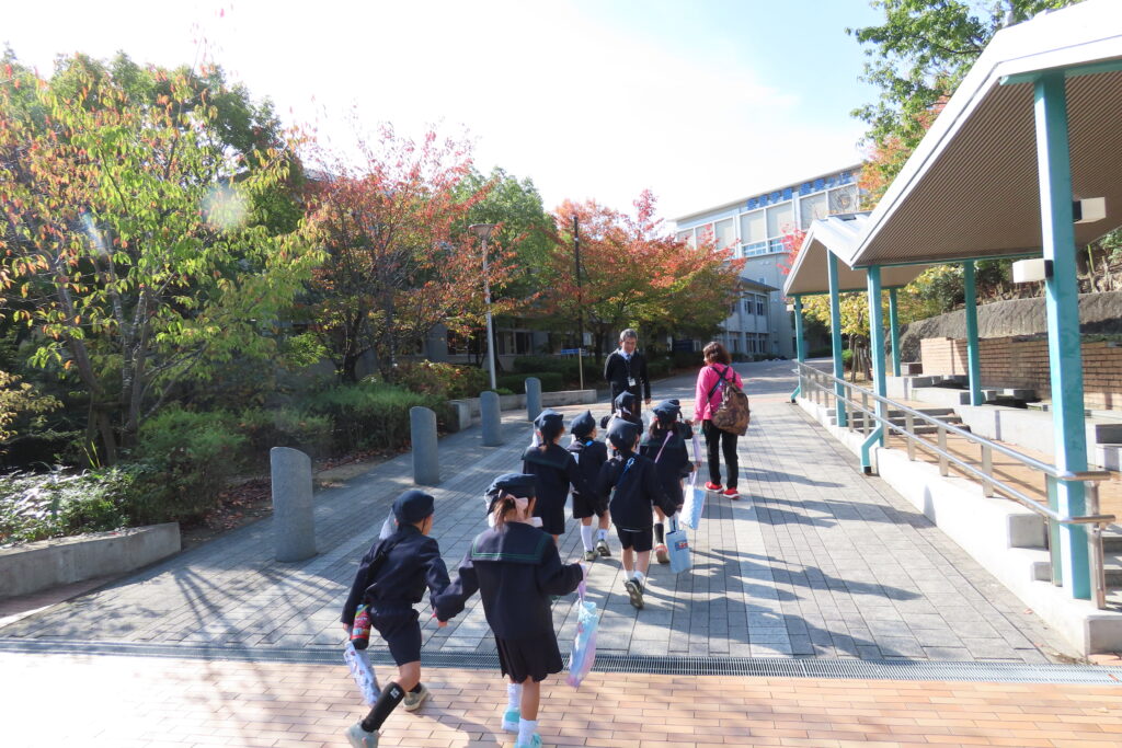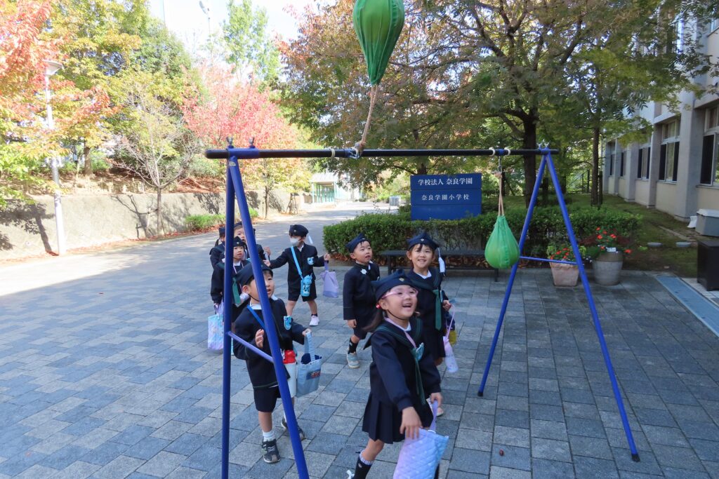 今日は年中「ほし組」さんが奈良学園小学校に体験入学に行ってきました。1学期は奈良学園小学校の先生にお越しいただき、年長「つき組」さんが体験授業をしました。秋は年中さんの体験です。その様子をご紹介します。