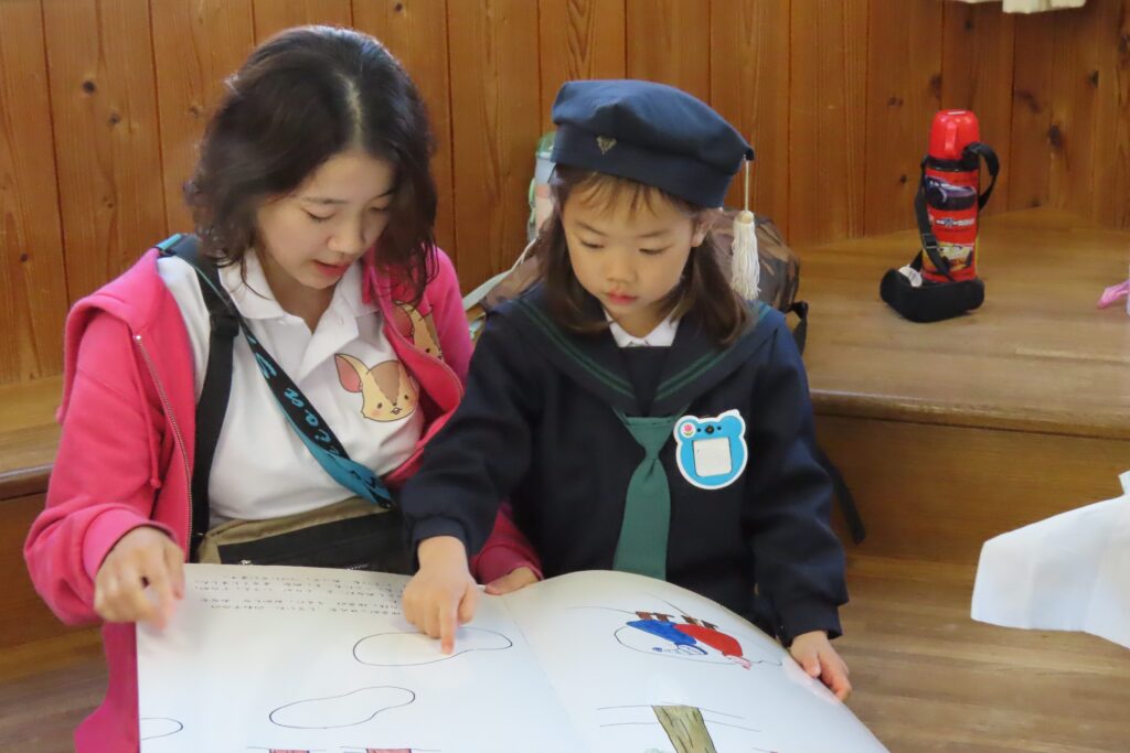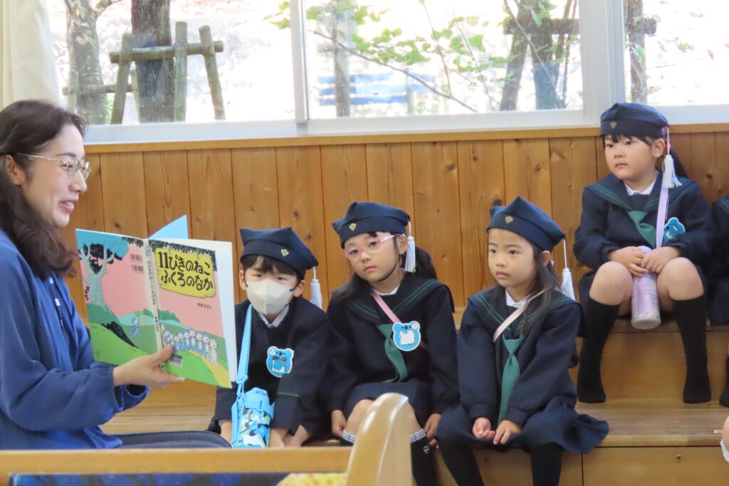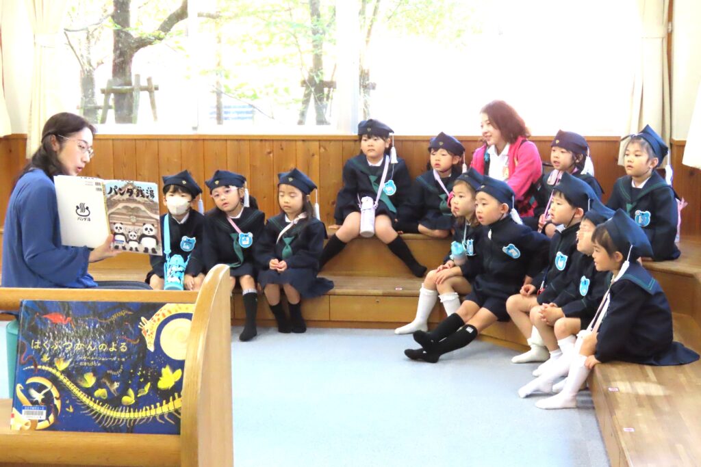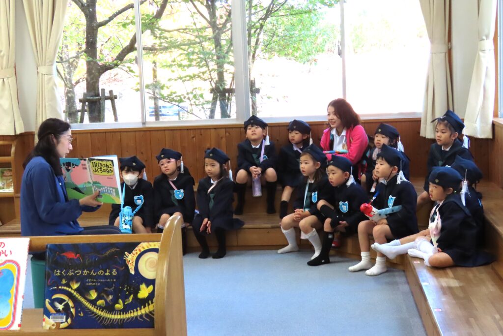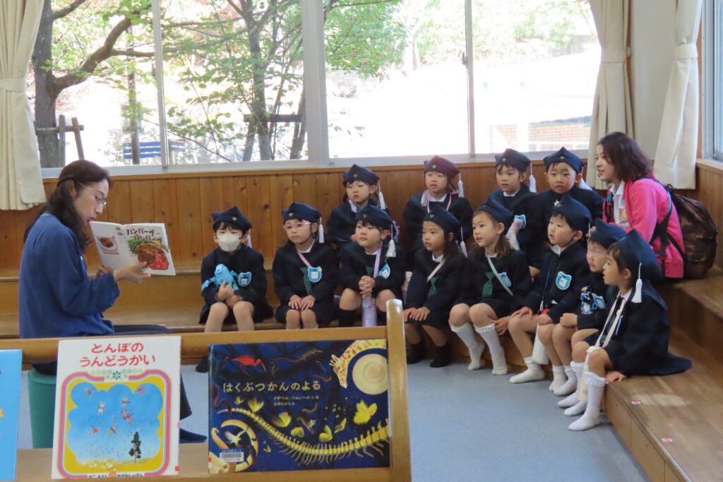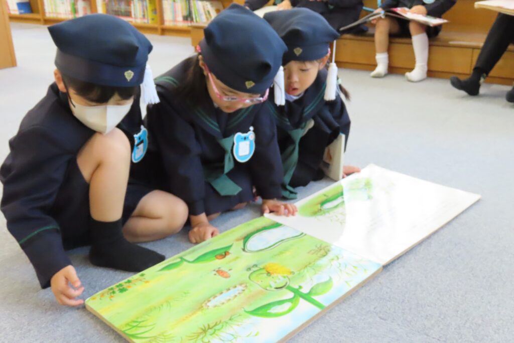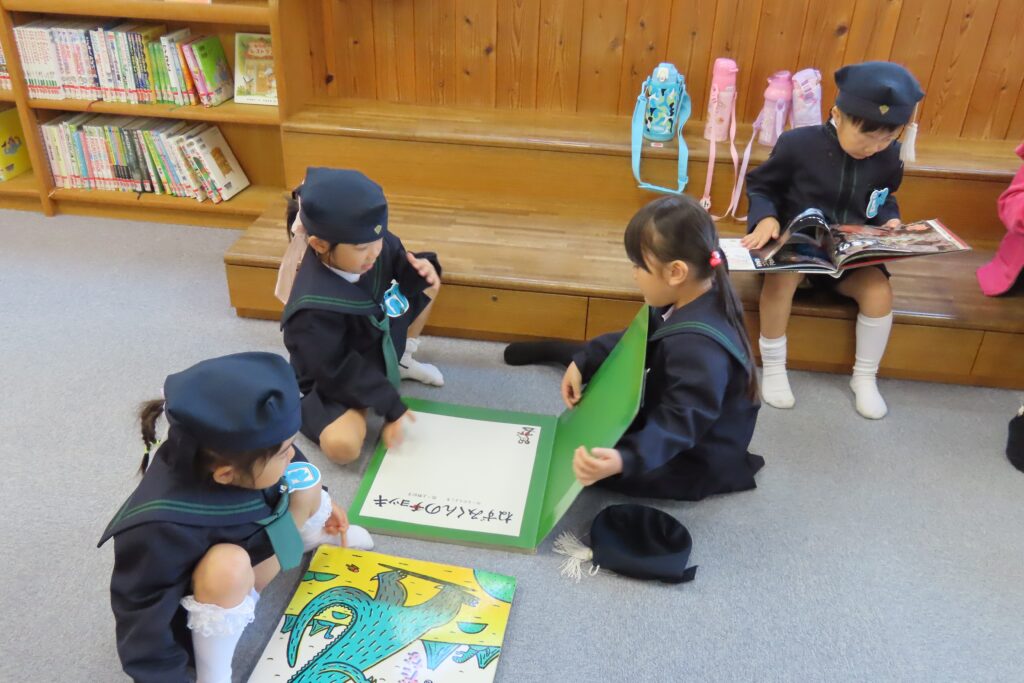 図書室では3冊の絵本を読んでいただきました。みんな最後まで集中して聞いていて、すごい! もう来年1年生になっても大丈夫、というくらいしっかり聞いていました。