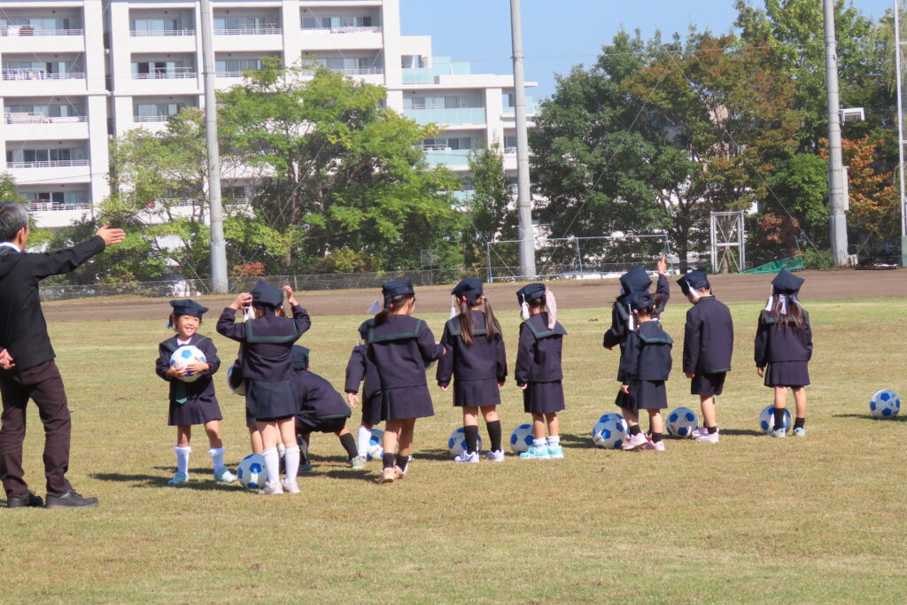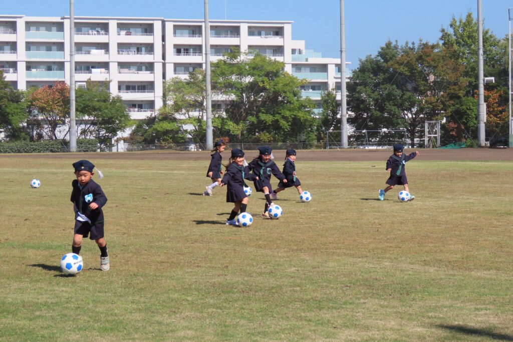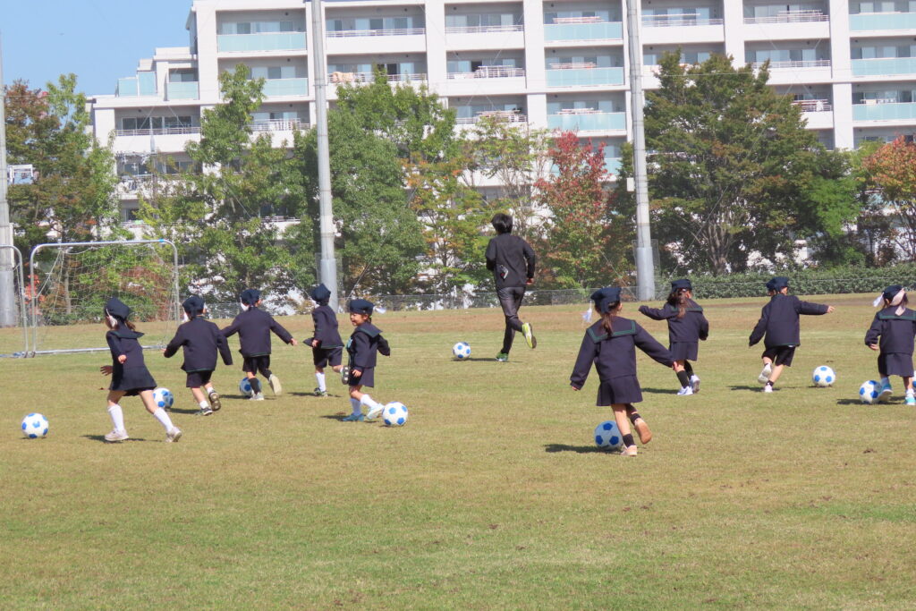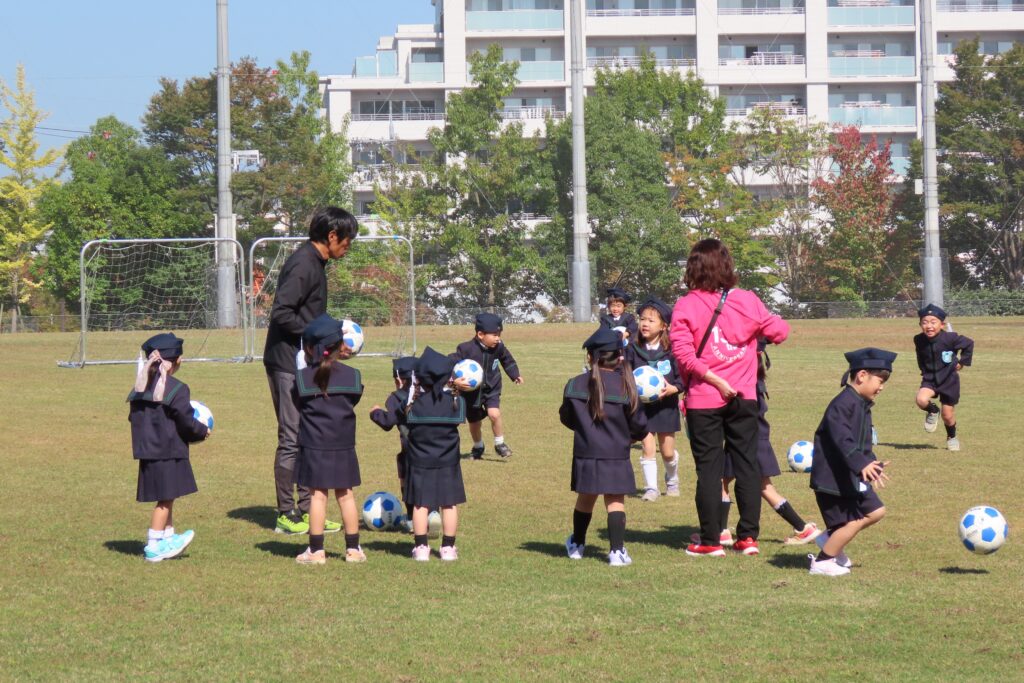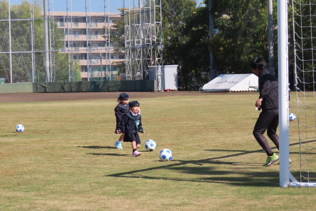 最後は運動場に出てサッカー遊びを。広い芝生の運動場は初めての経験です。みんな元気いっぱいボールをけって、走っていました。