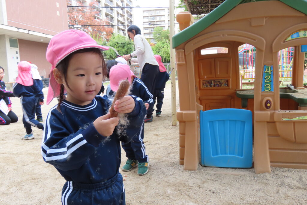 フランクフルトのように見えたのはガマの穂。バーンとたたくと、中から白い綿毛が飛び出します。子どもたちは、それが楽しくて…。