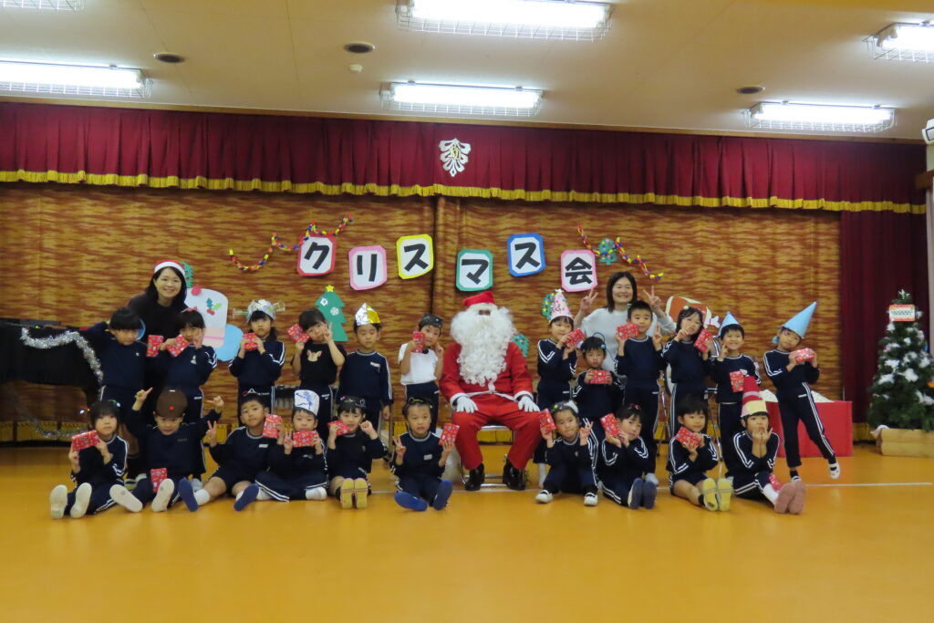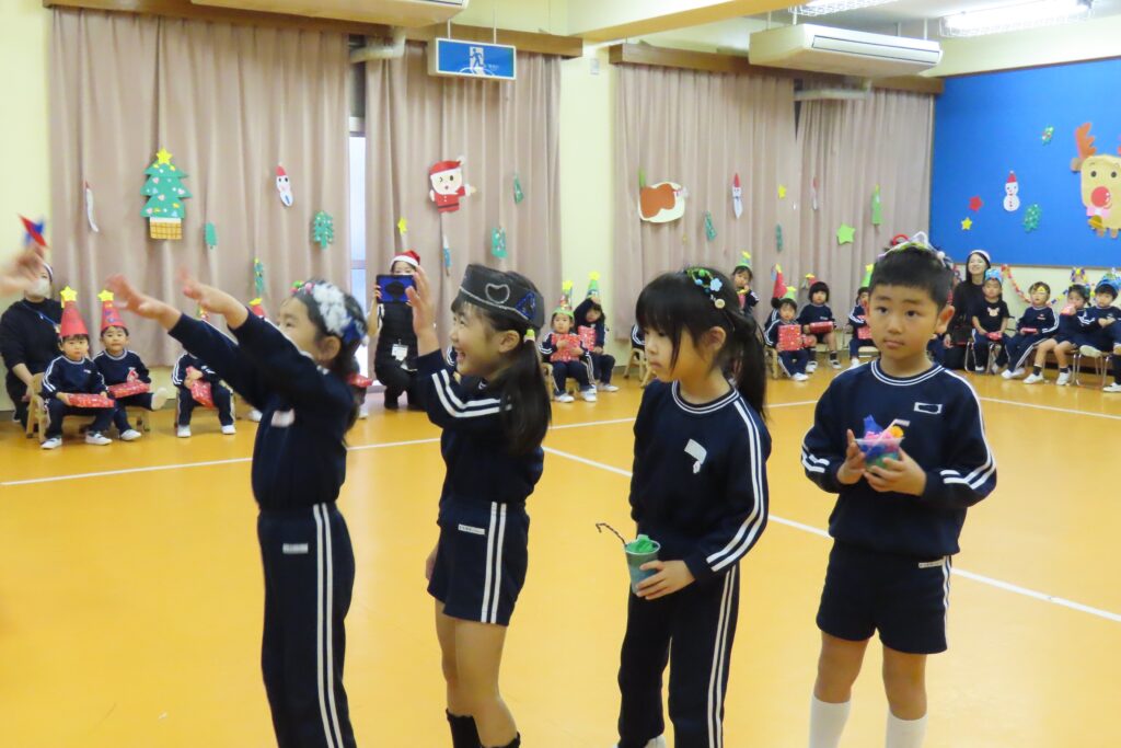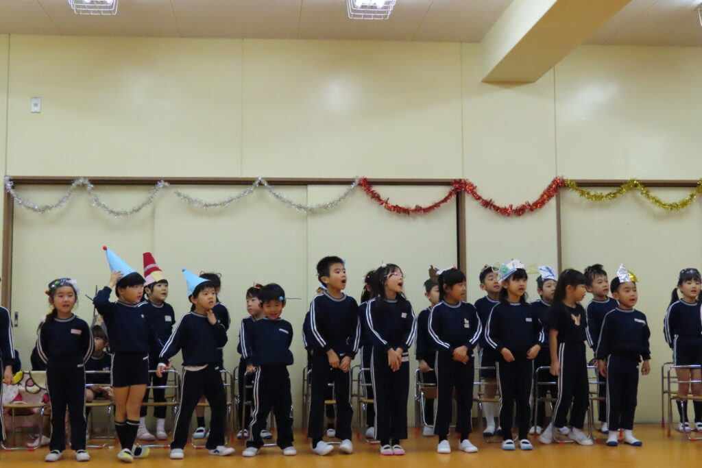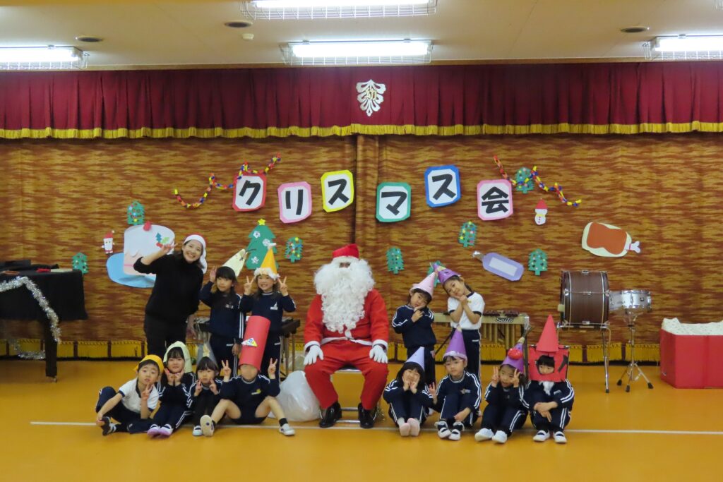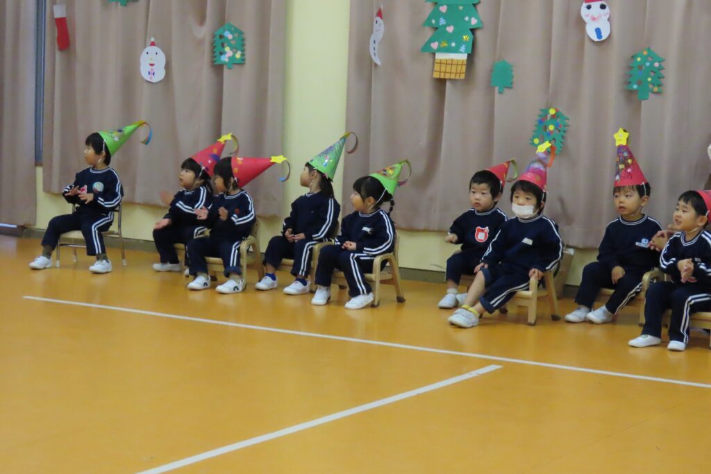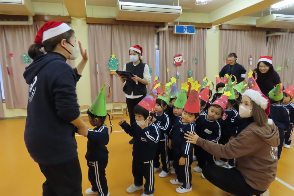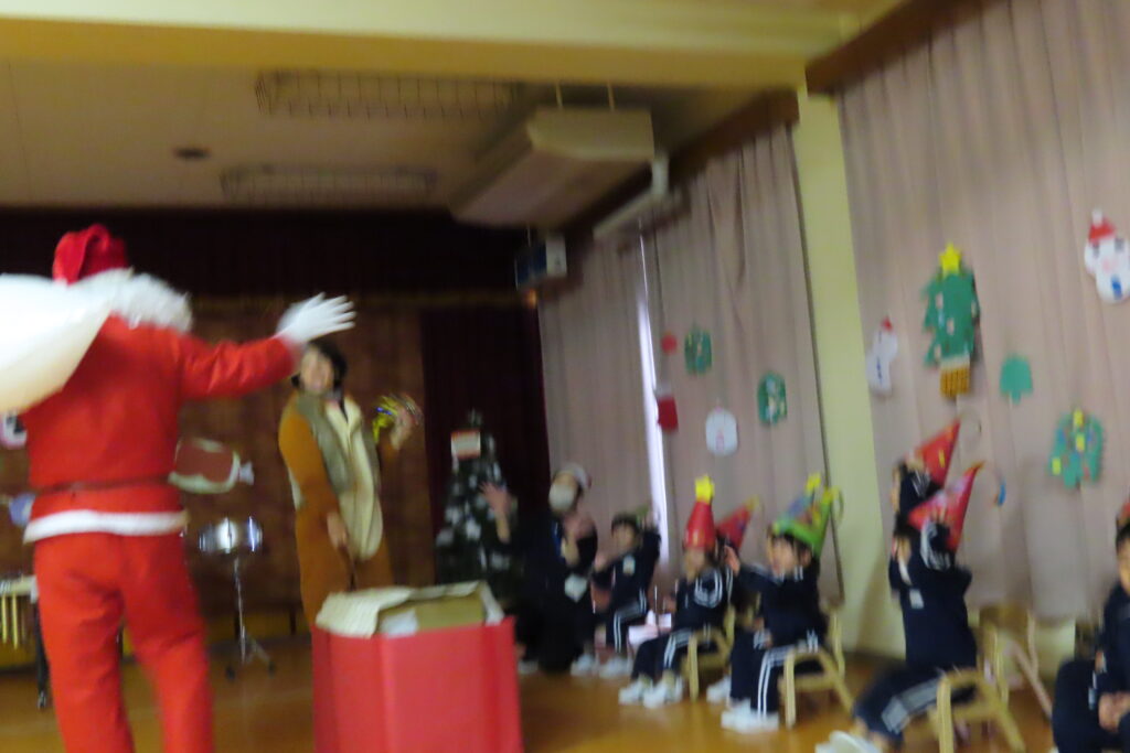 今日は一足早いクリスマス会。京西中学校の職場体験の中学生先生もいっしょに子どもたちを盛り上げてくれました。まずはその様子をご紹介します。