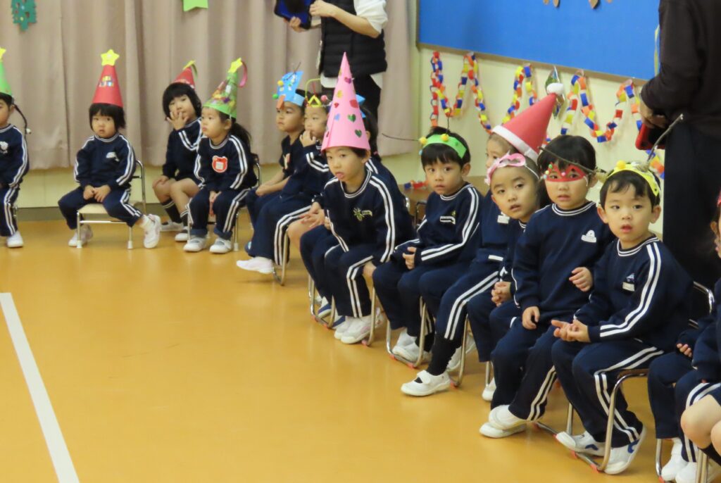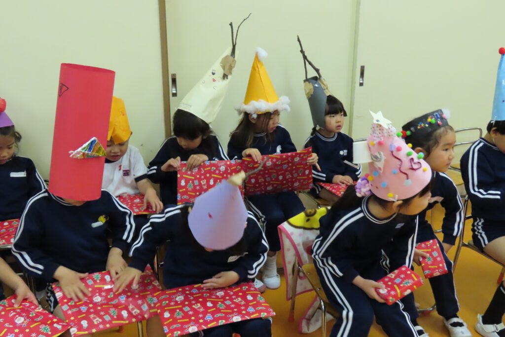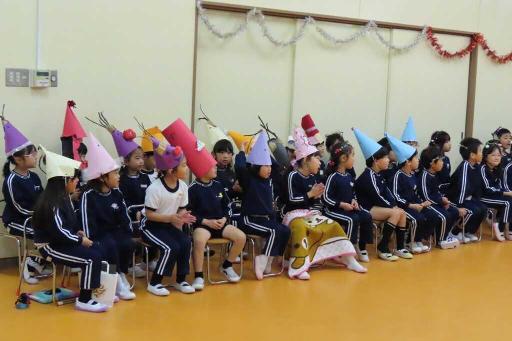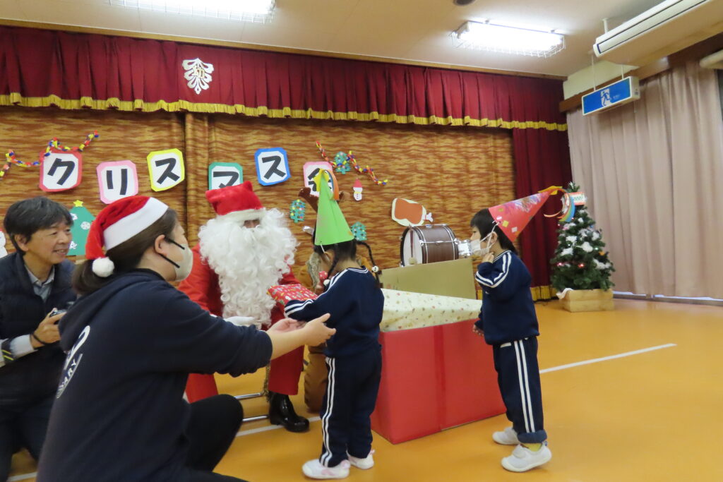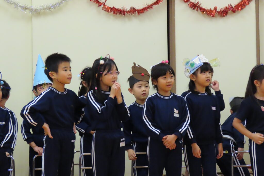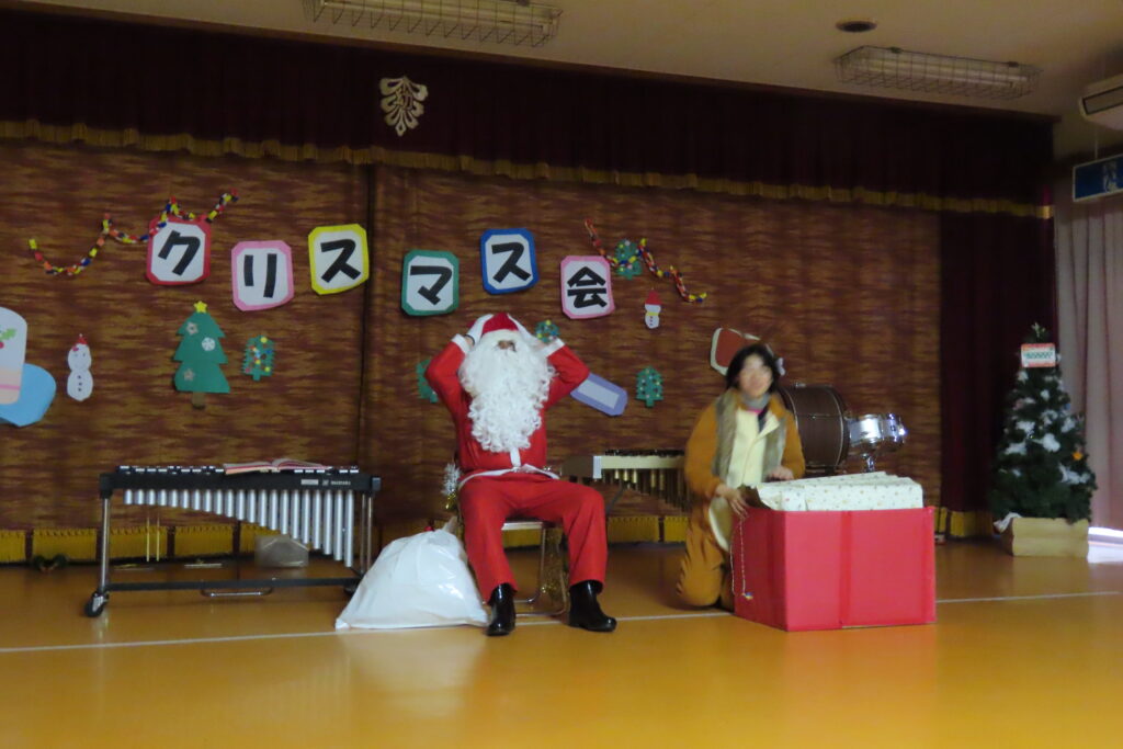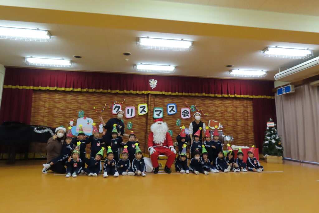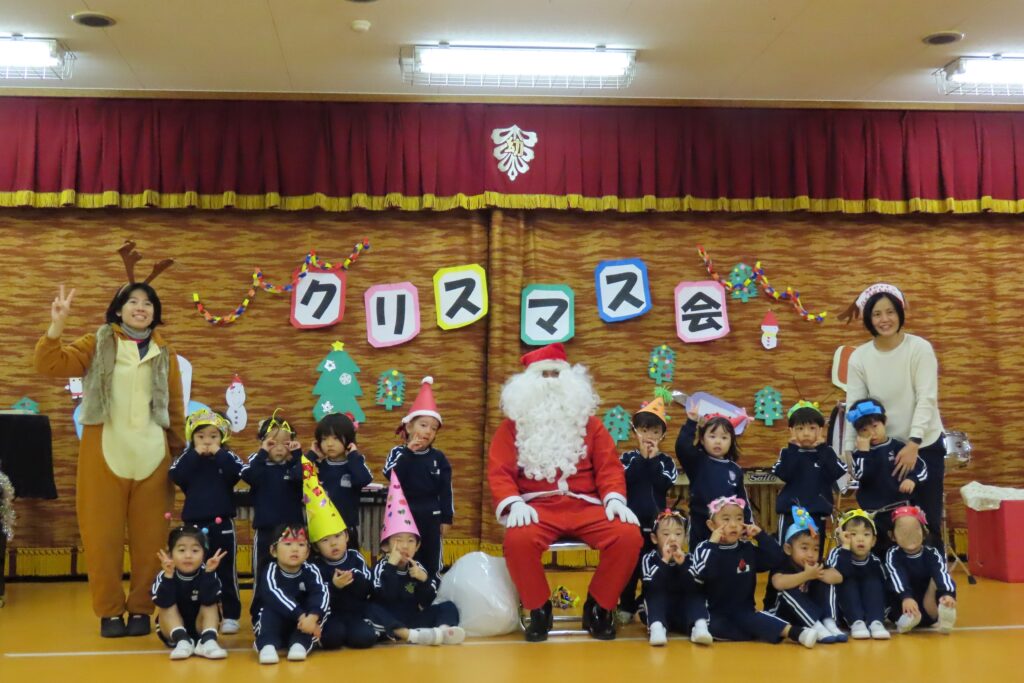 今日は一足早いクリスマス会。京西中学校の職場体験の中学生先生もいっしょに子どもたちを盛り上げてくれました。まずはその様子をご紹介します。
