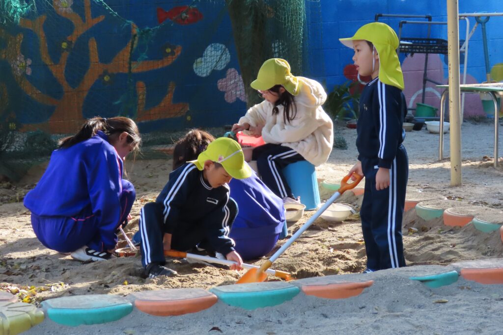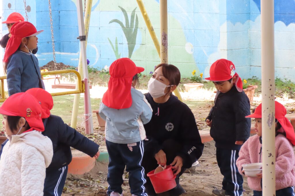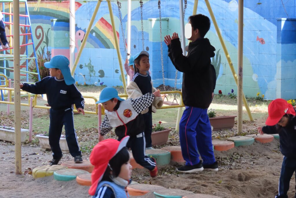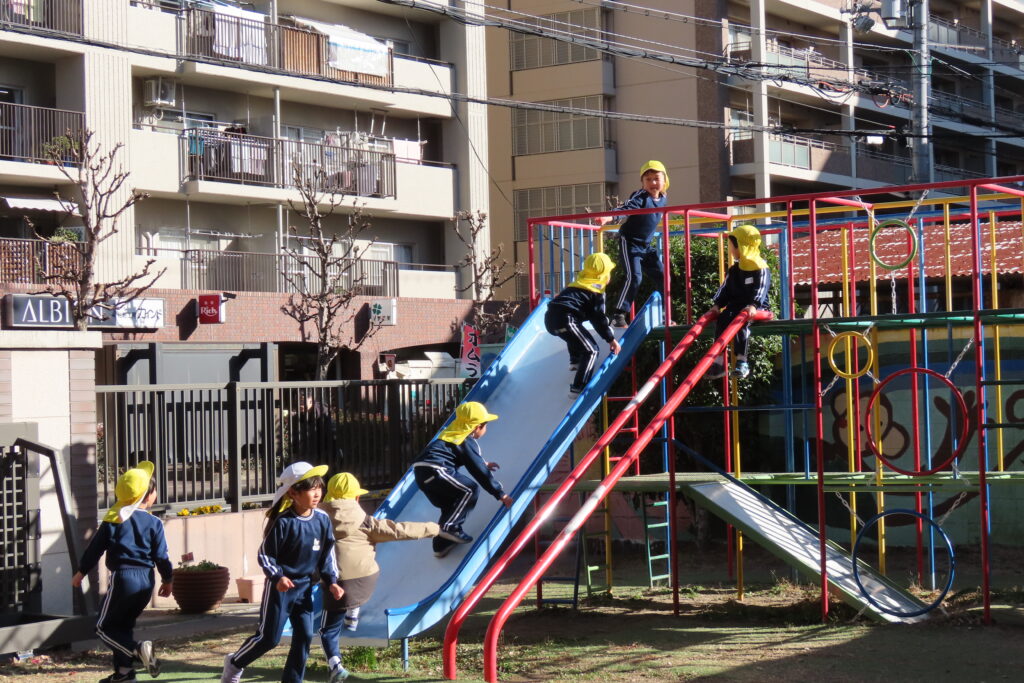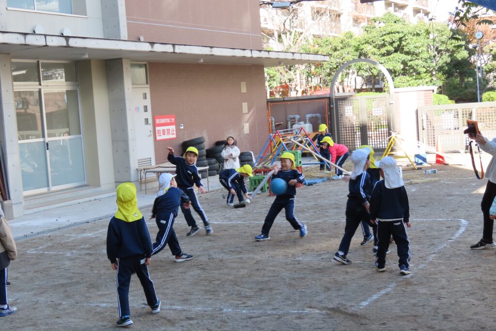 子どもたちは、寒さに負けずに今日も元気よく外で遊んでいました。