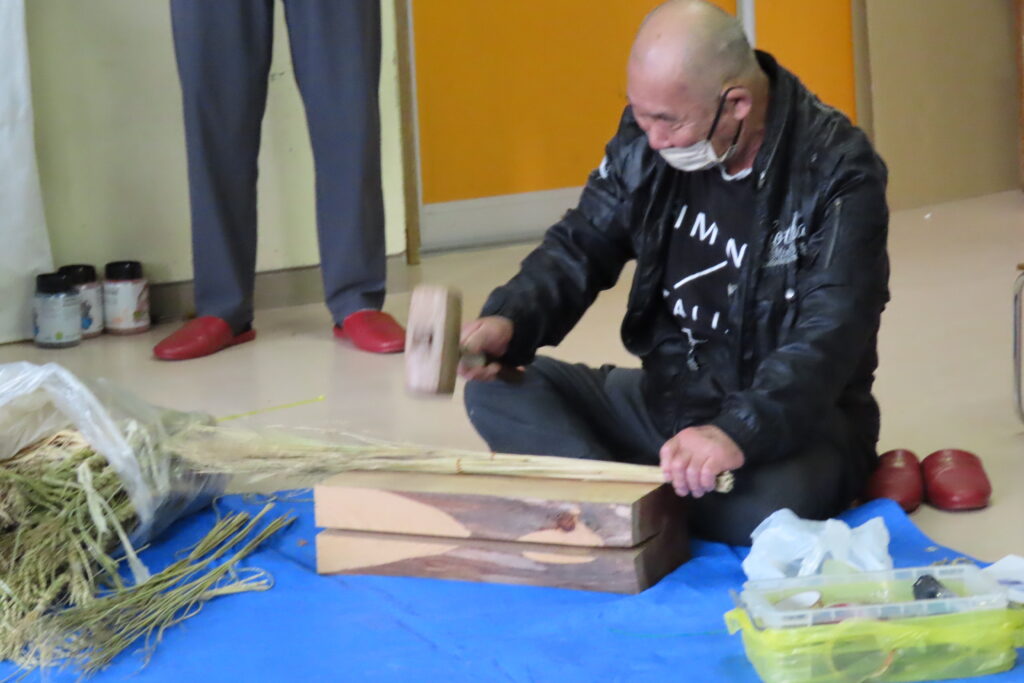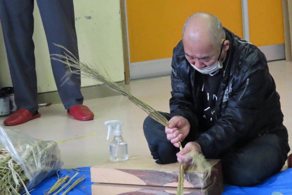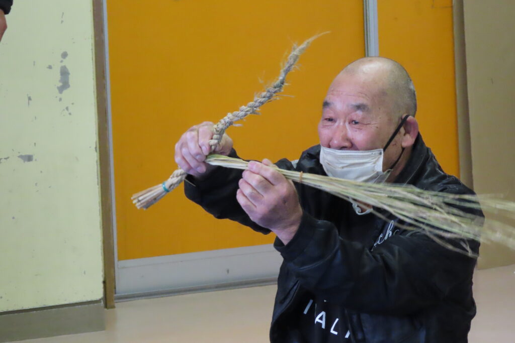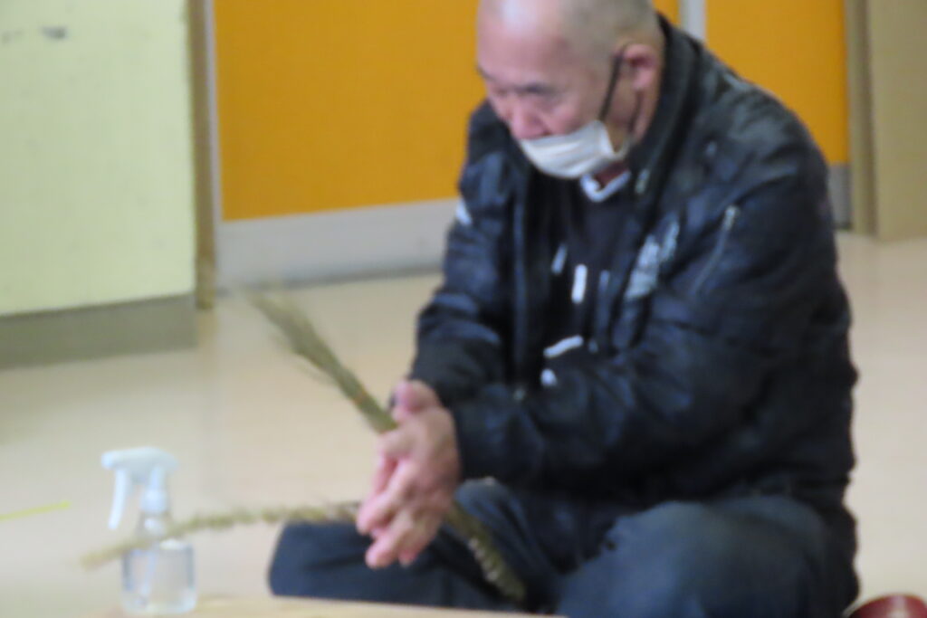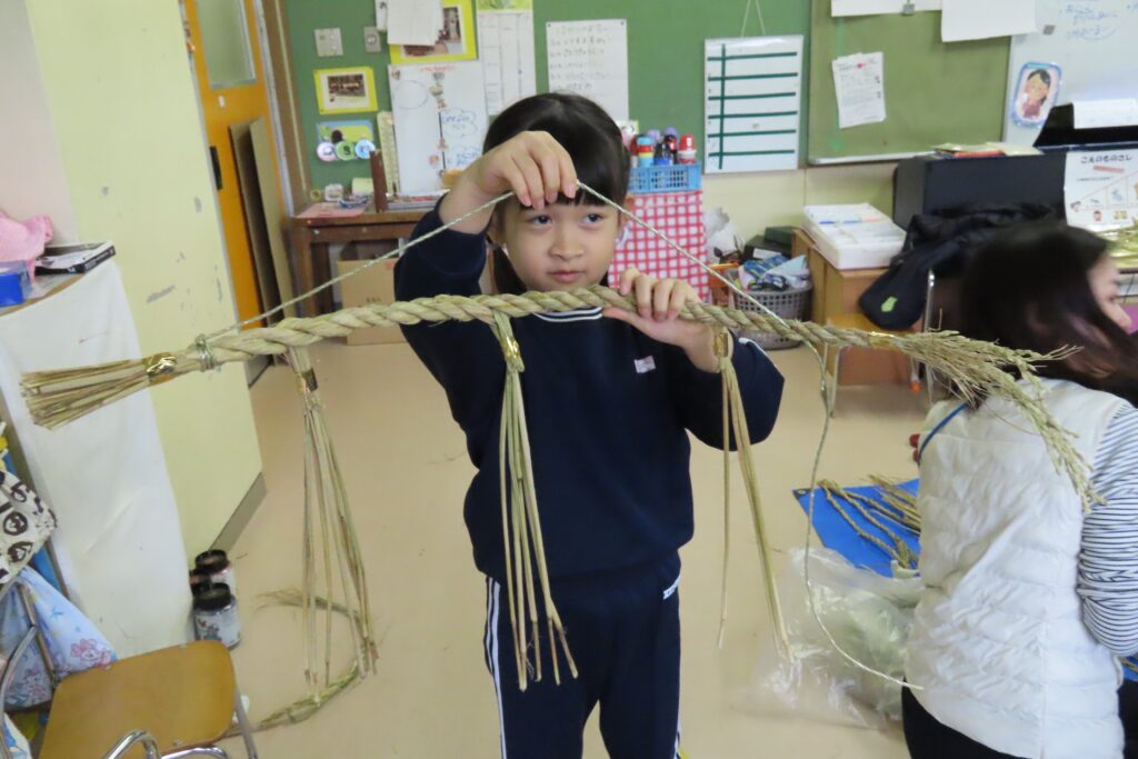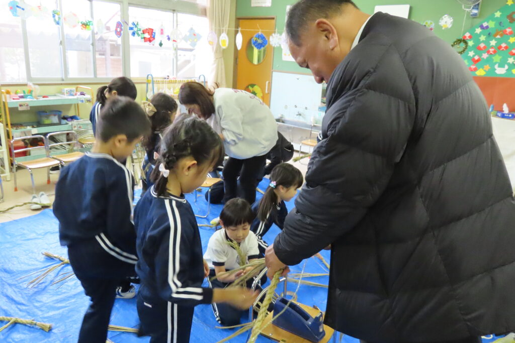 昨日はお正月に向けての『しめ縄づくり』を年長「つき組」さんが行いました。今年も田原地区からしめ縄作り名人の巽さんに来ていただきました。