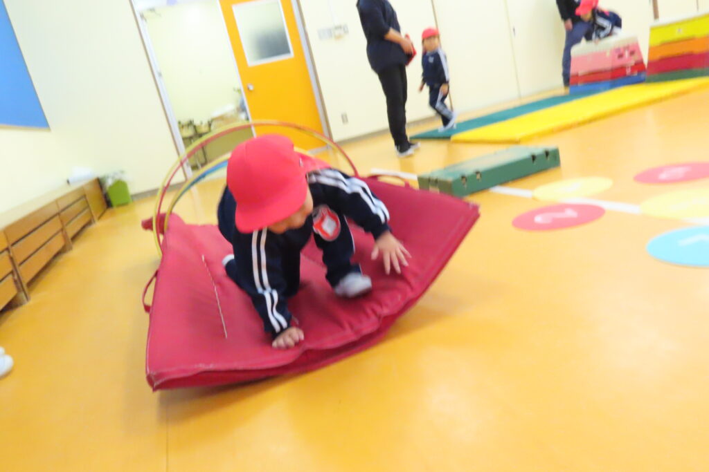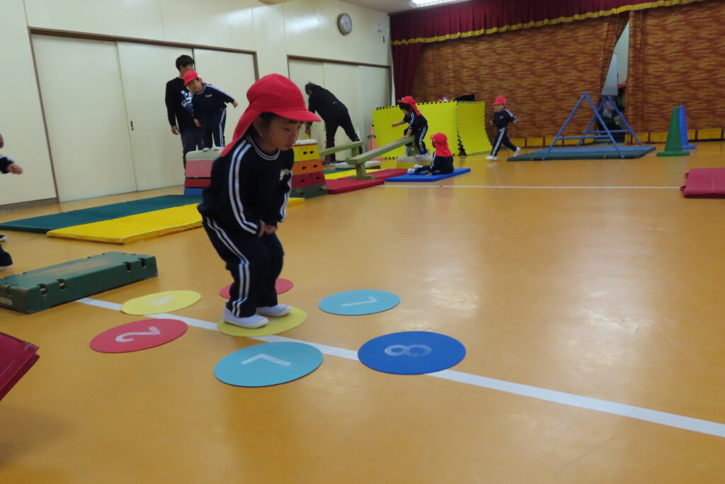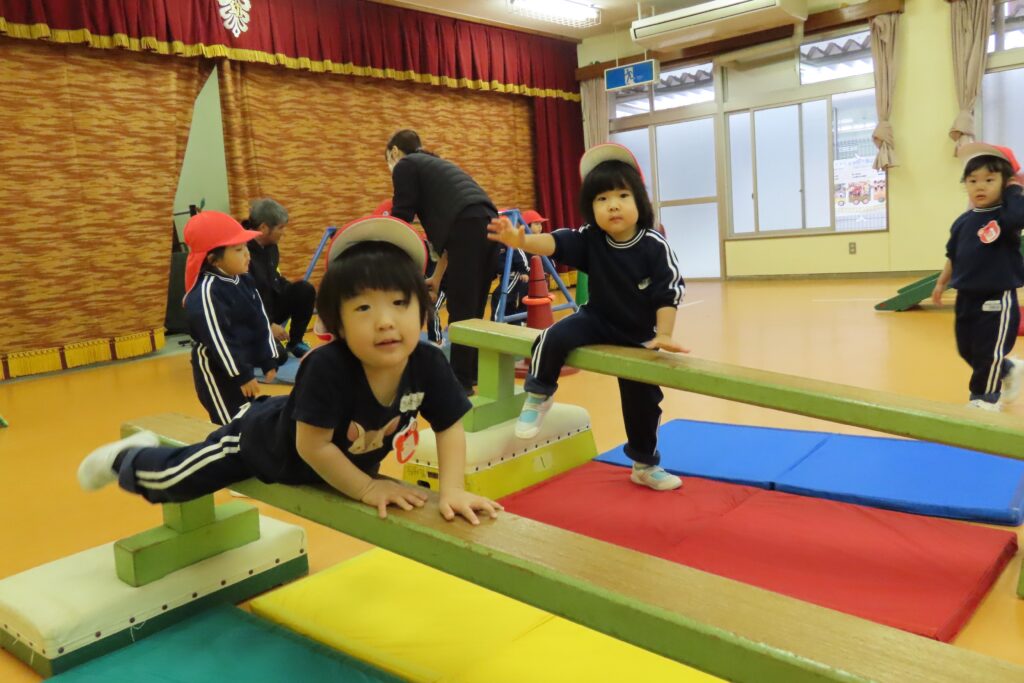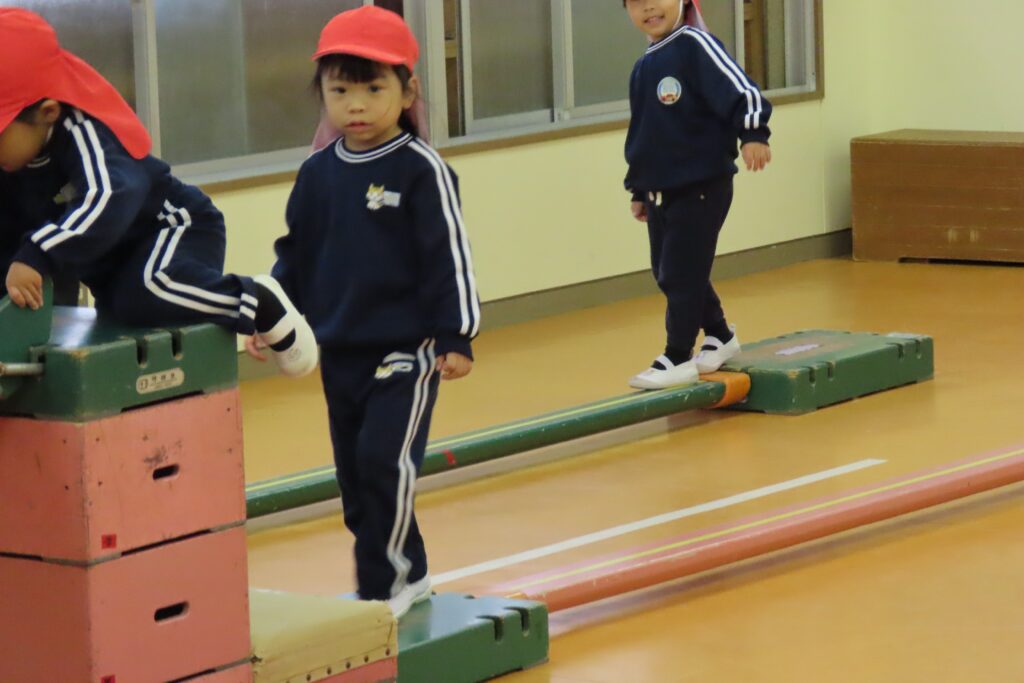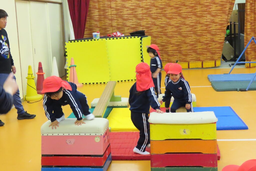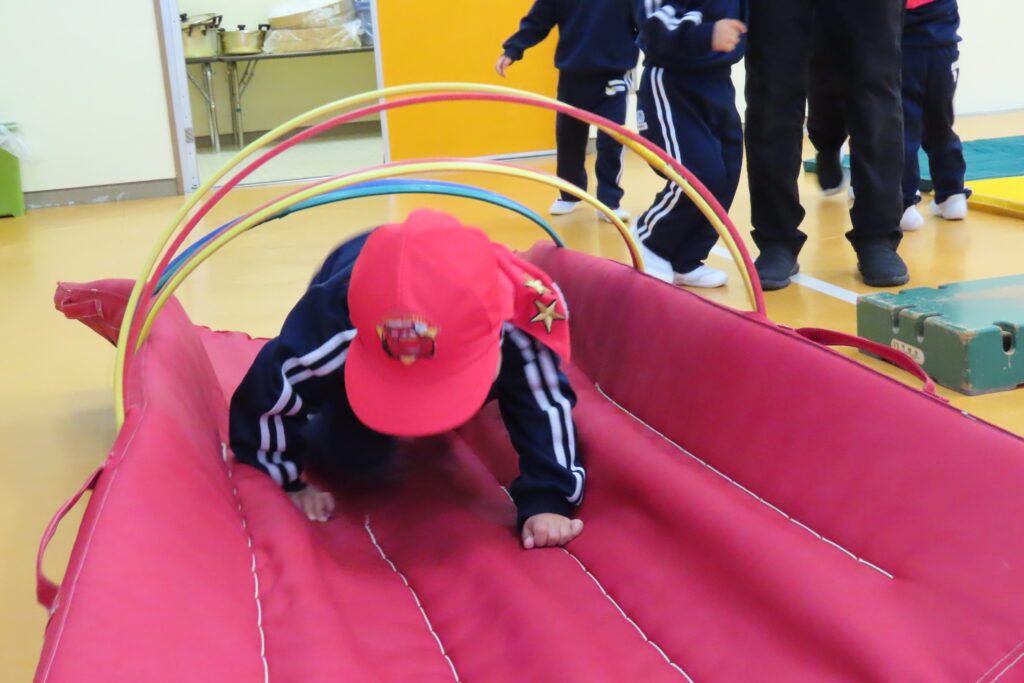 昨日は年長さんがしめ縄づくりをしている時間に2歳児・満3歳児クラスのお友だちが体育教室をしました。2歳児・満3歳児用に組んだサーキットを楽しんでいる様子もご覧ください。