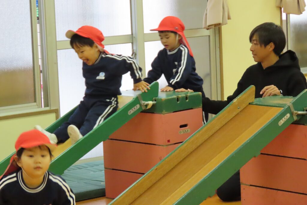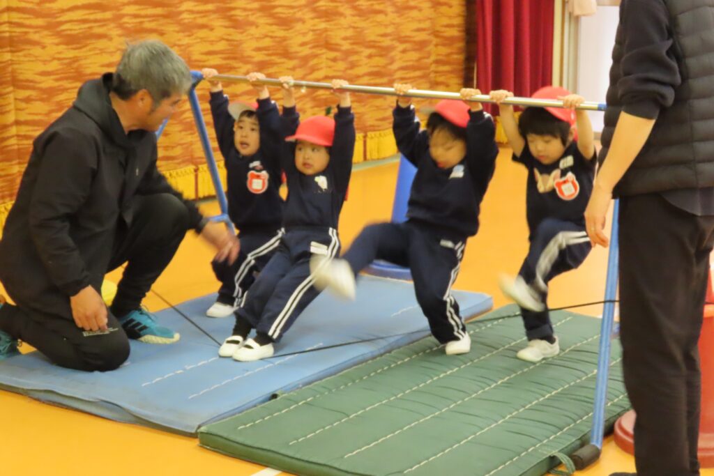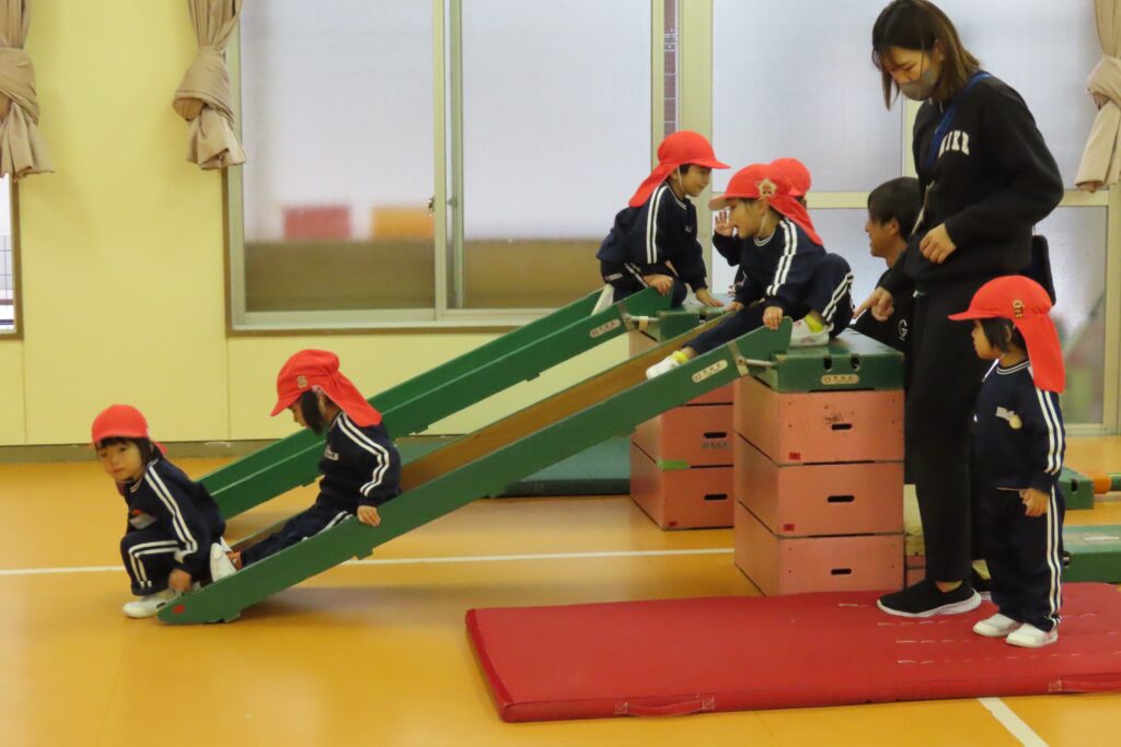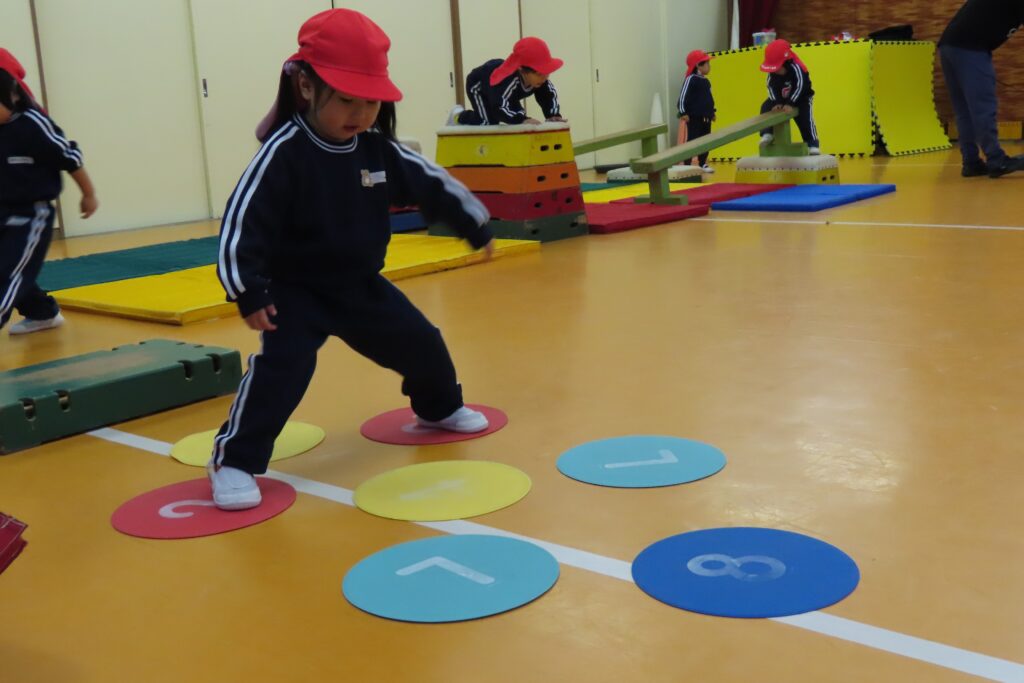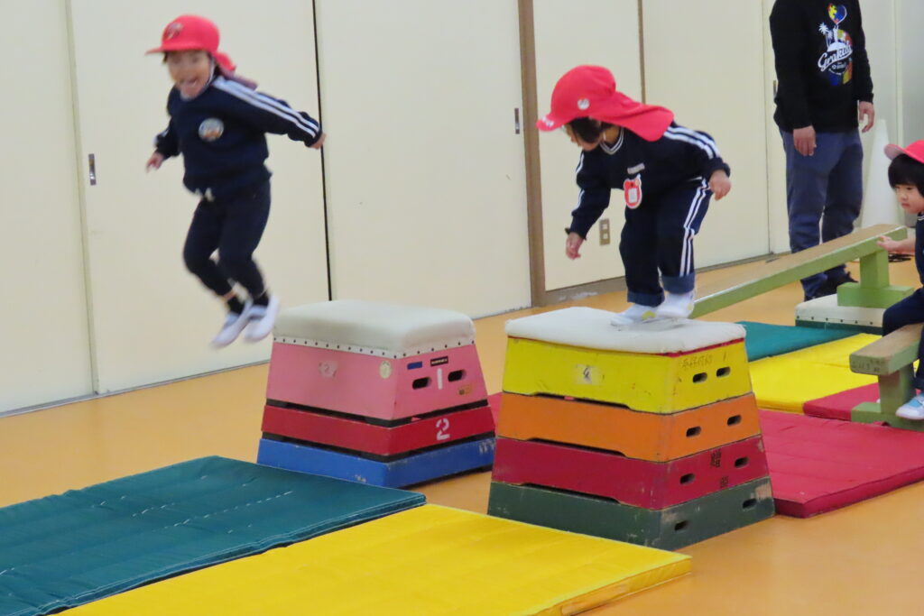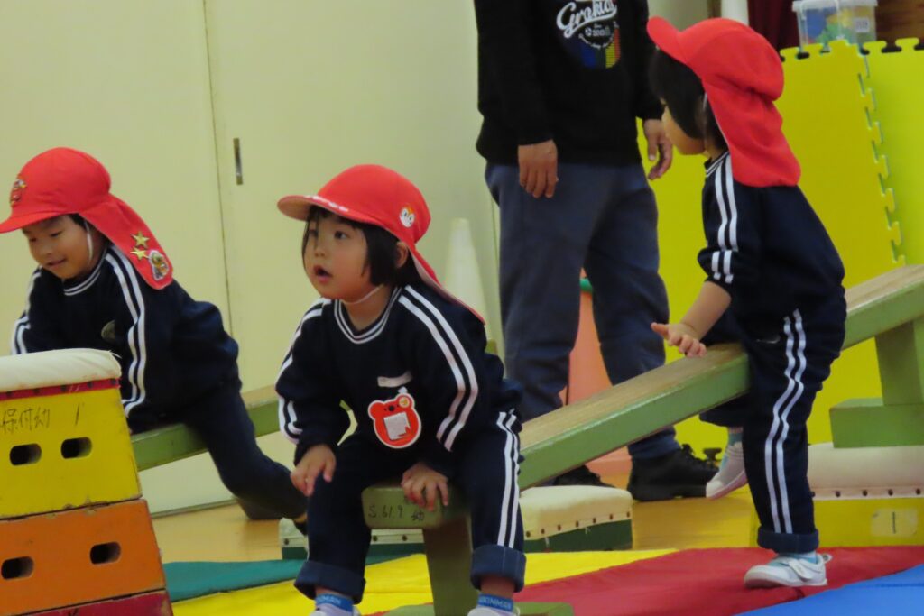昨日は年長さんがしめ縄づくりをしている時間に2歳児・満3歳児クラスのお友だちが体育教室をしました。2歳児・満3歳児用に組んだサーキットを楽しんでいる様子もご覧ください。