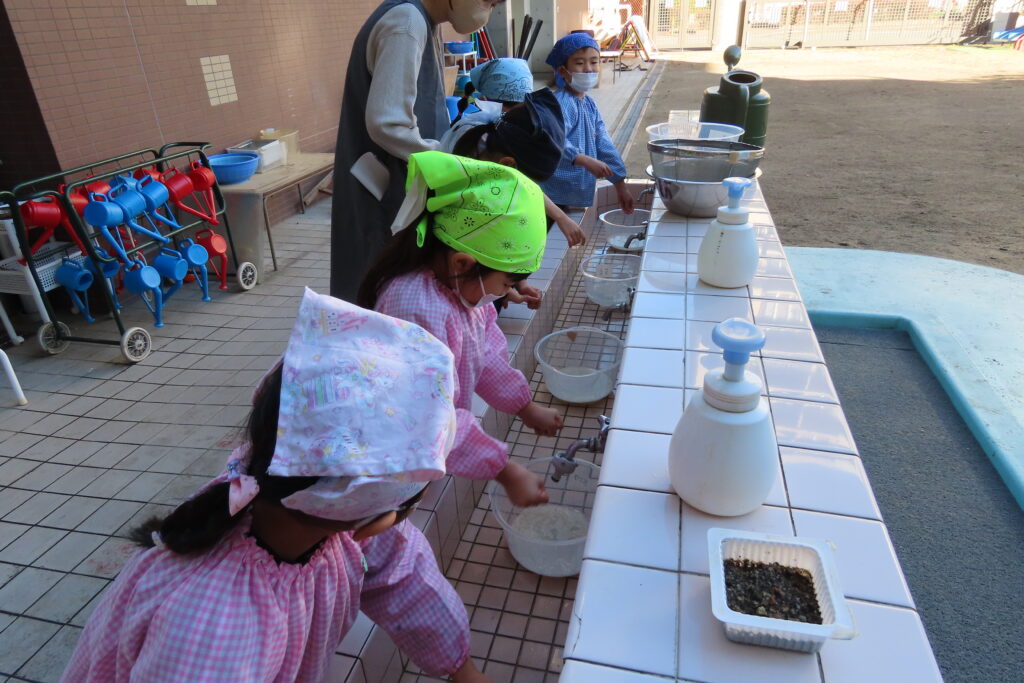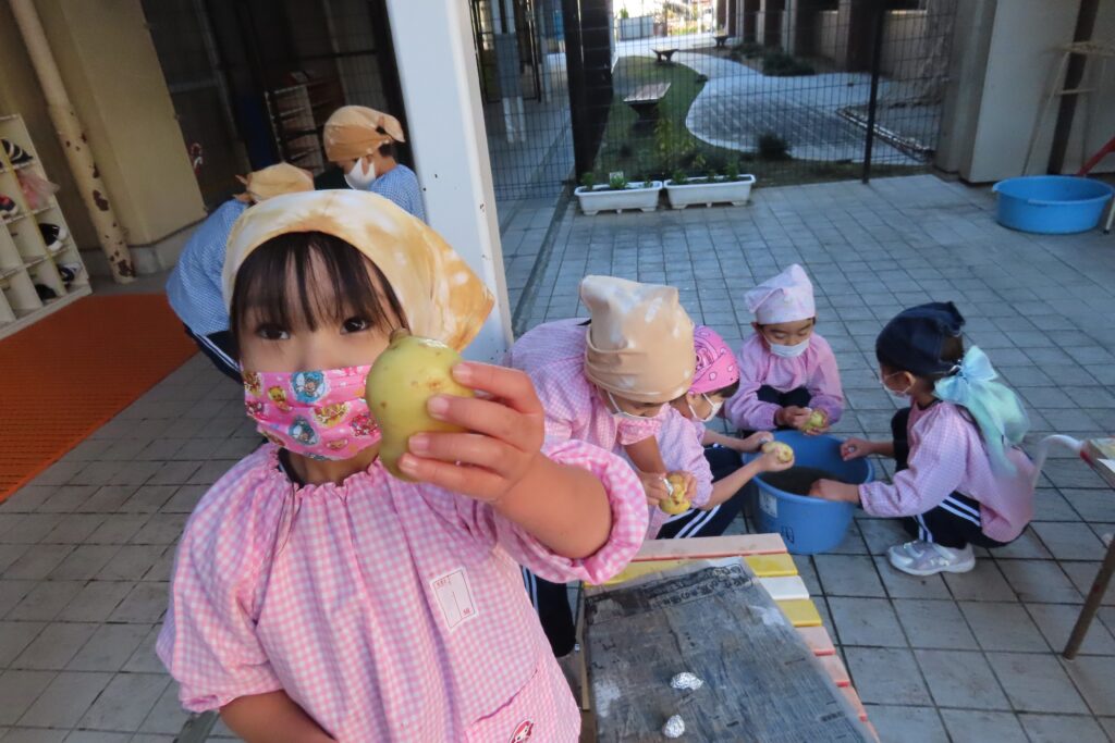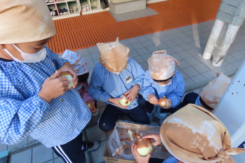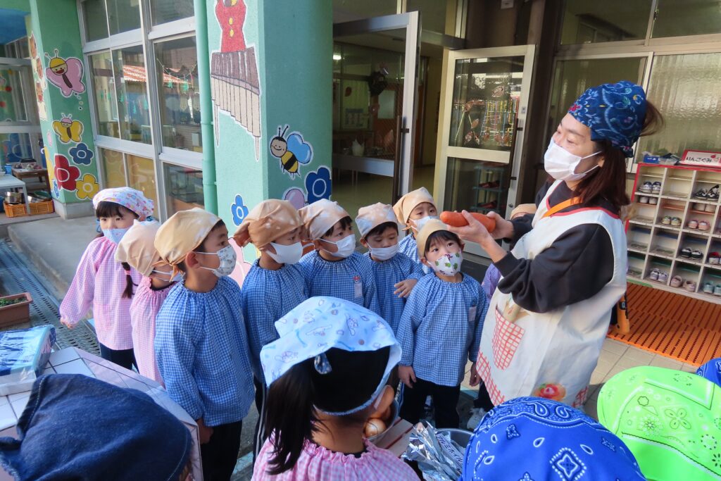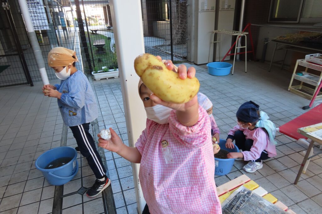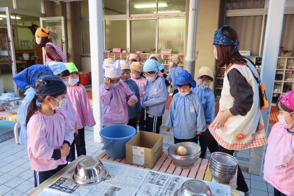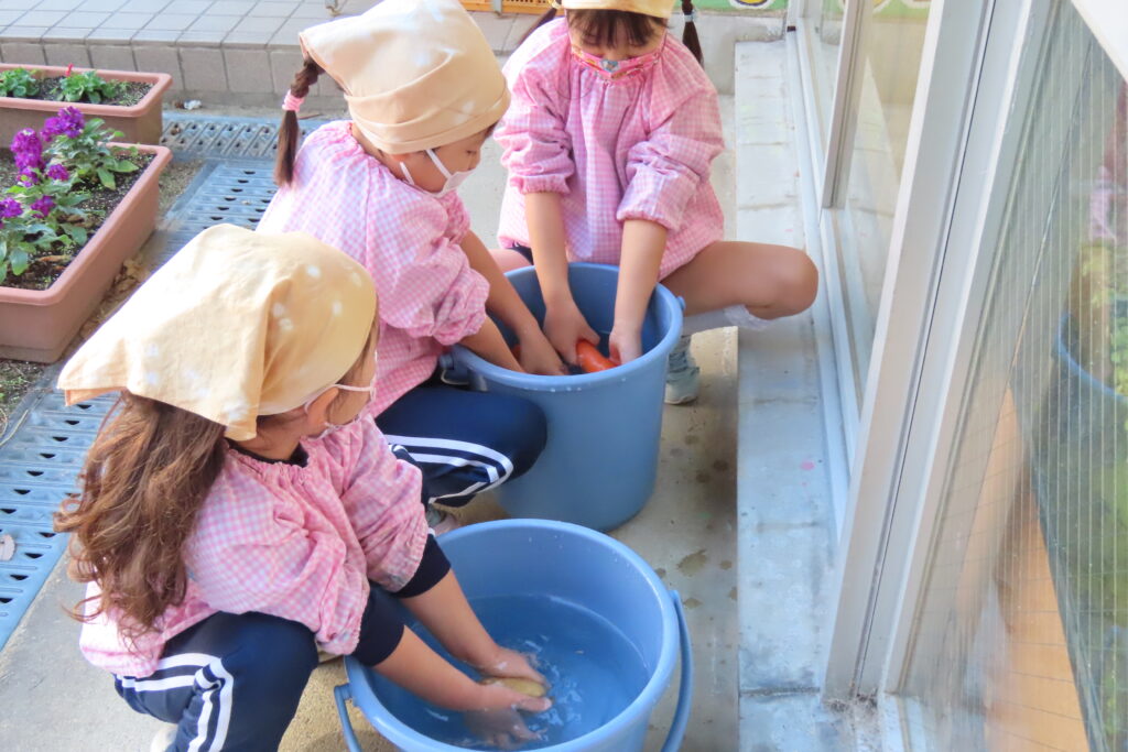「つき組」さんは野菜(にんじん・たまねぎ・ジャガイモ)を洗っていました。