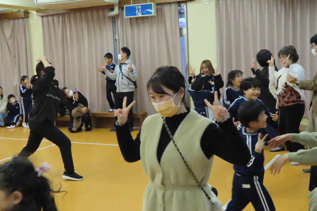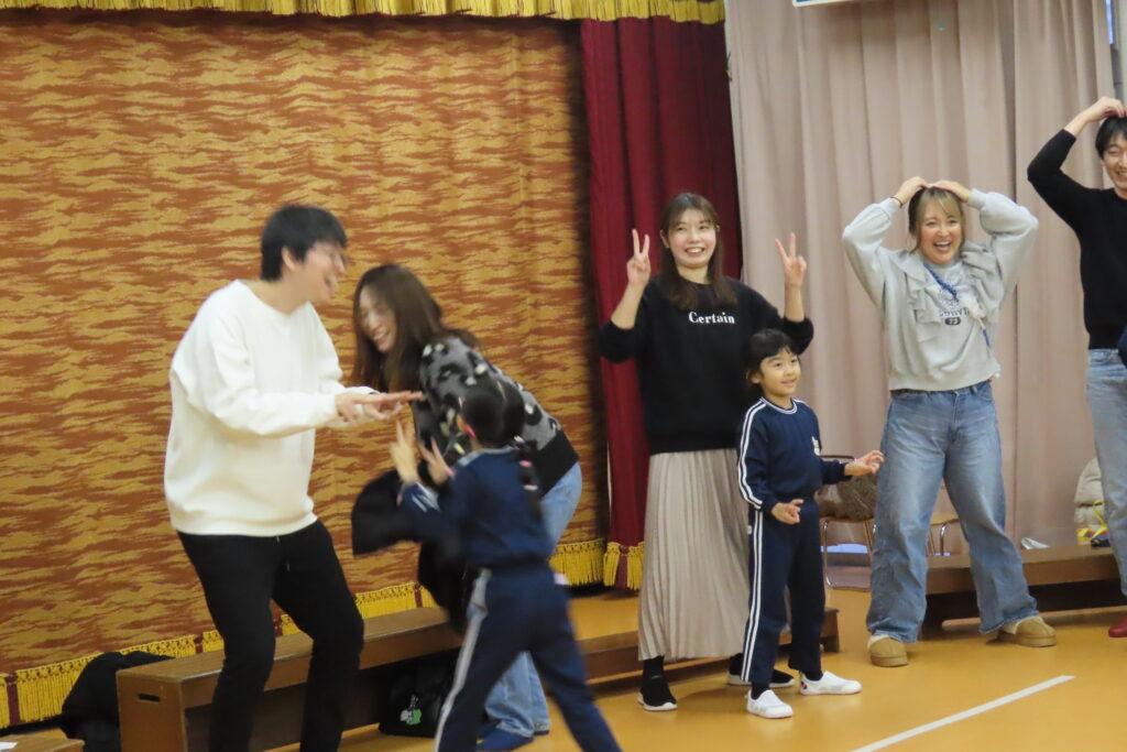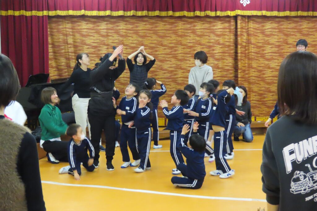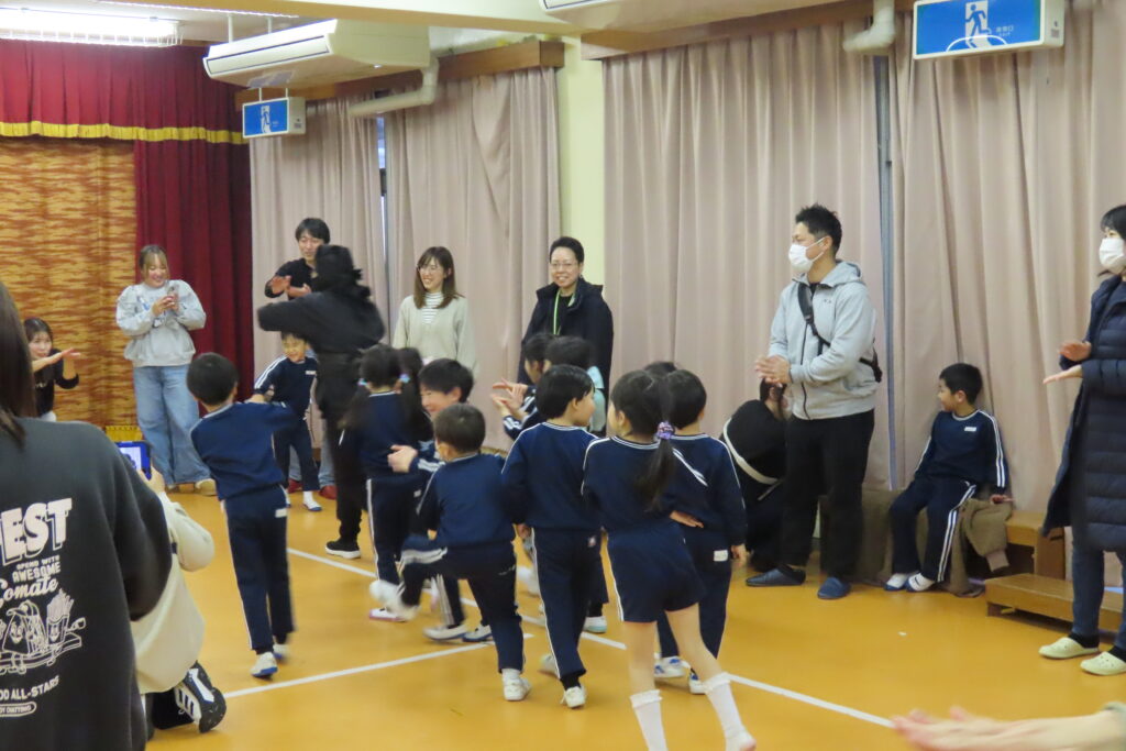保護者と向かい合い、「ありがとうの花」の歌のプレゼント。