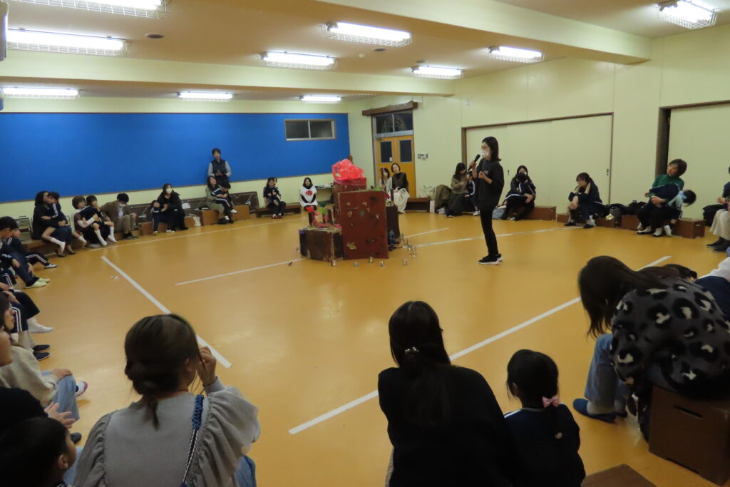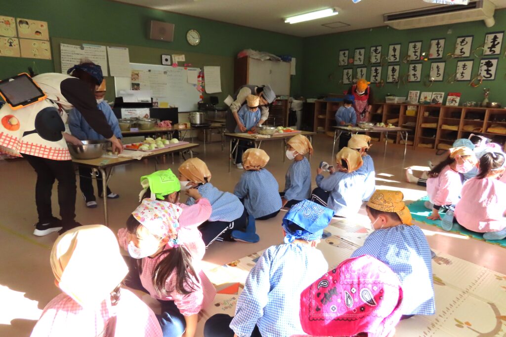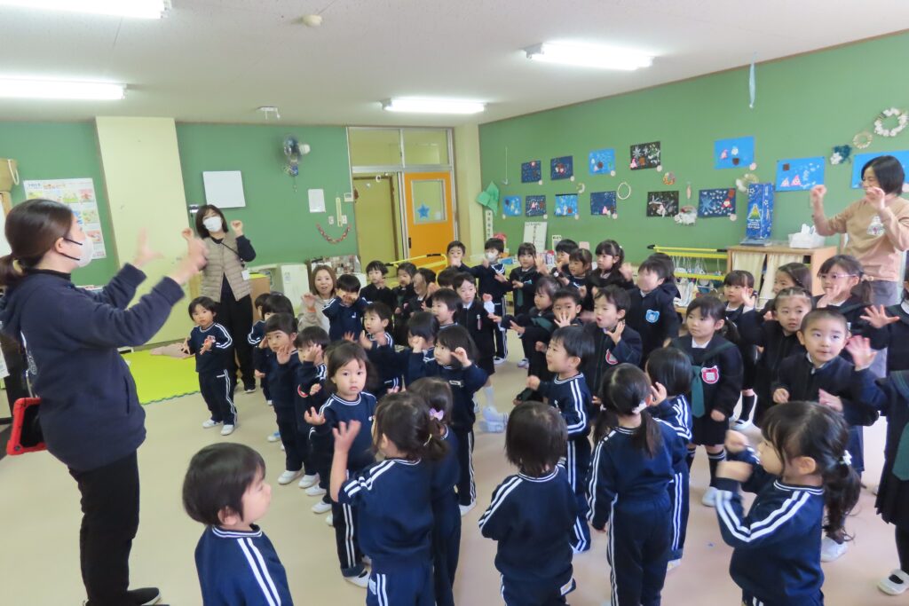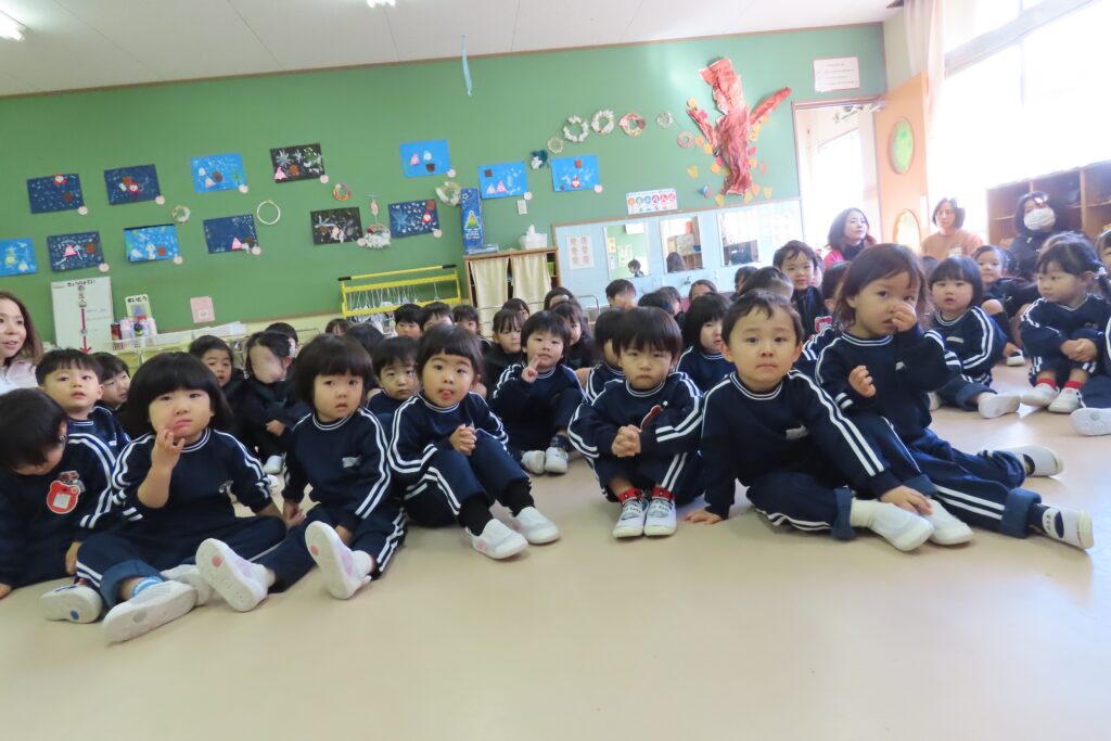 いつもの遊戯室は年長「つき組」さんの思い出保育の舞台となっているので今日は年中「ほし組」さんの保育室で行いました。