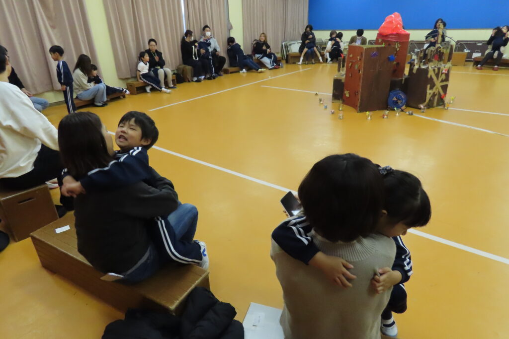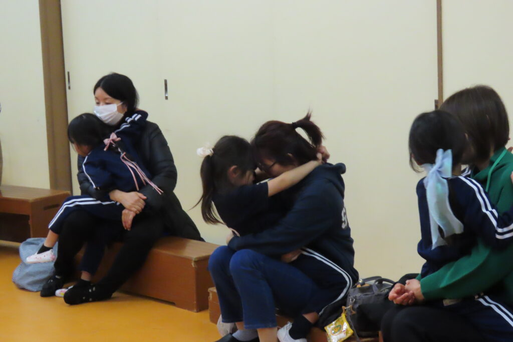 「ありがとうの花」のあと感謝の気持ちを保護者に伝え、最後は、お家の人にハグをして…。