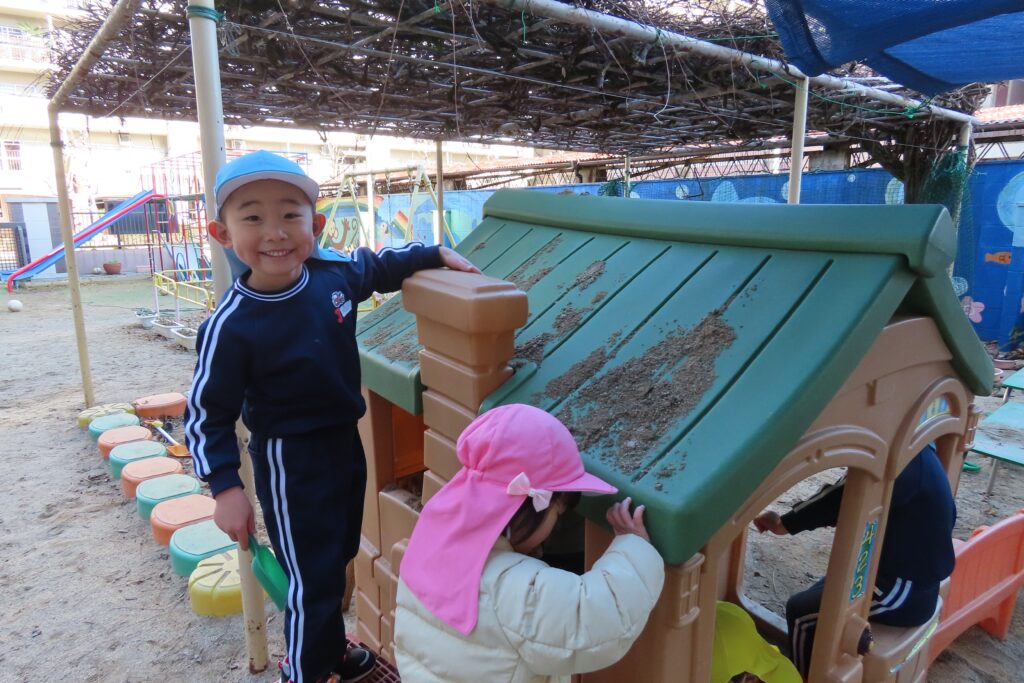 いよいよ明日から3学期。 初日の明日は午前保育の始園式ですが、みんな元気に登園してくることを楽しみに待っています。今日は、冬休み最後の預かり保育日でした。子どもたちは寒さに負けずに園庭で楽しく遊んでいました。