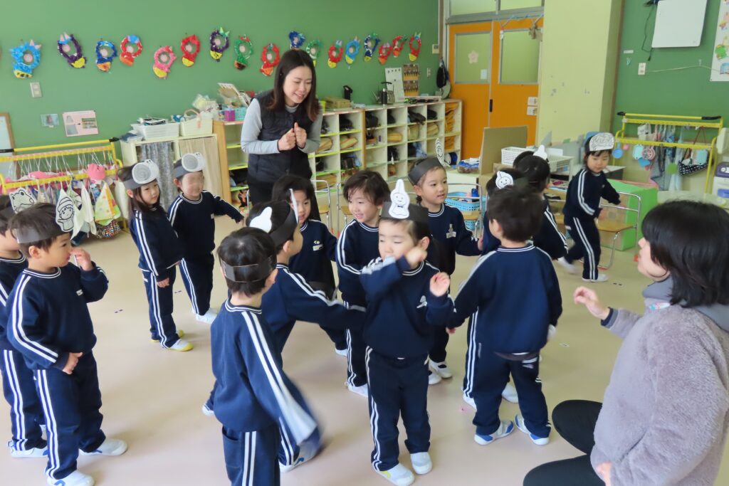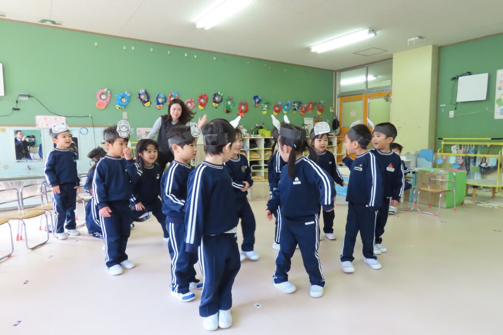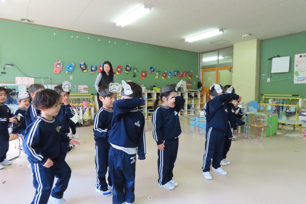 年少「さくら組」さんの生活発表会の練習です。「だるまさんがころんだ」が出てくるこの劇は、何?