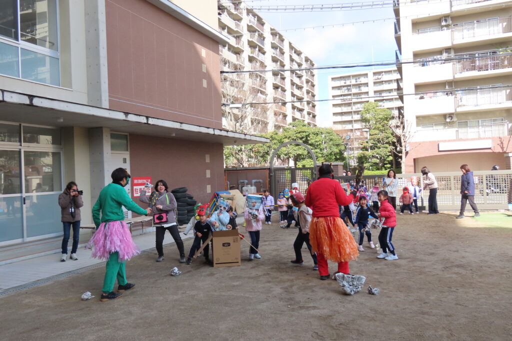 園庭がきれいになった後は、本園恒例の「福の神」様がやってきて、