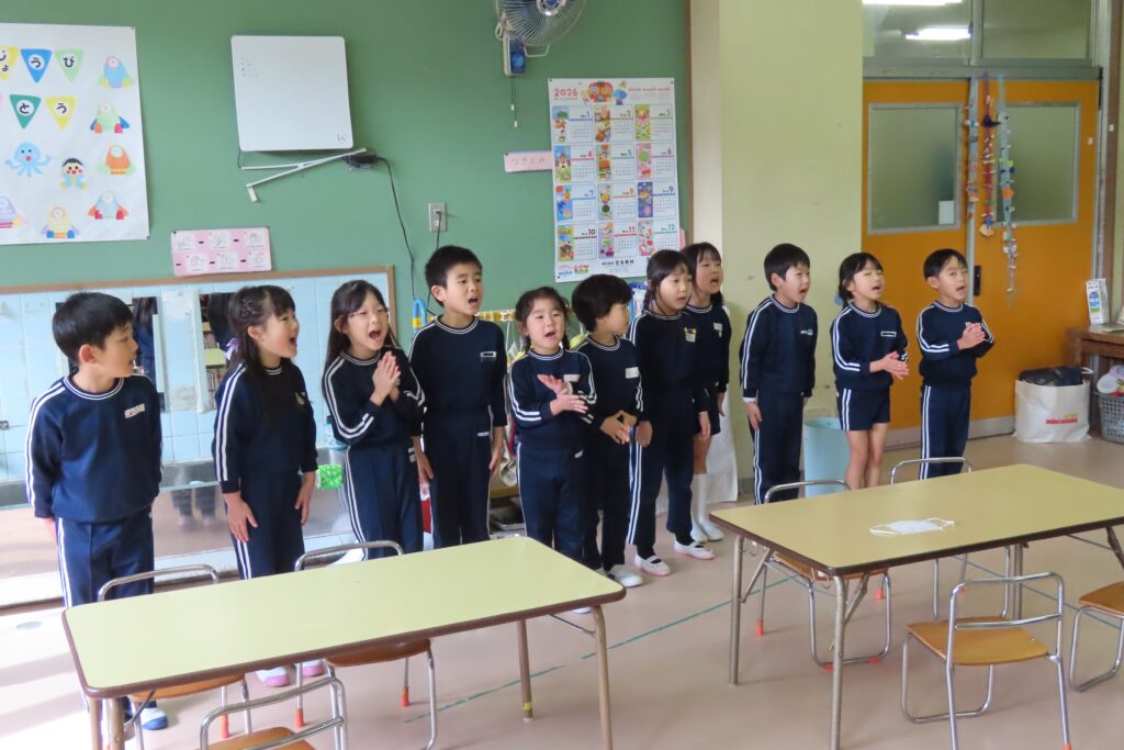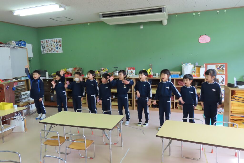 生活発表会のオープニングの練習です。本園の発表会のオープニングとエンディングは年長児さんの英語のご挨拶。2グループに分かれての練習です。どちらのグループも最初はオーバーアクション入りのご挨拶になってしまいましたが、フェーガン先生の