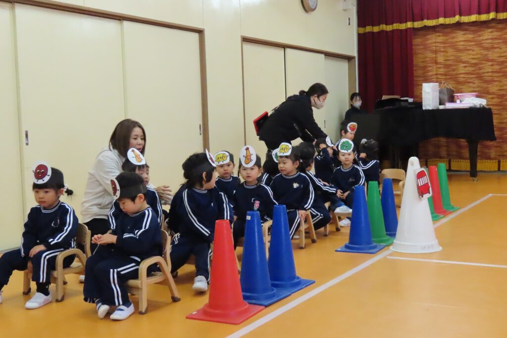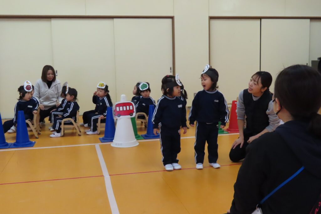 2歳児・満3歳児の「りんご組」さんの生活発表会は2月24日(火)です。出し物は「劇遊び」と「楽器あそび」です。劇遊びは、みんな大好きな絵本、『おべんとうばす』です。