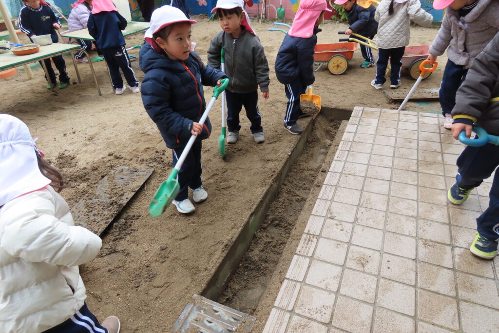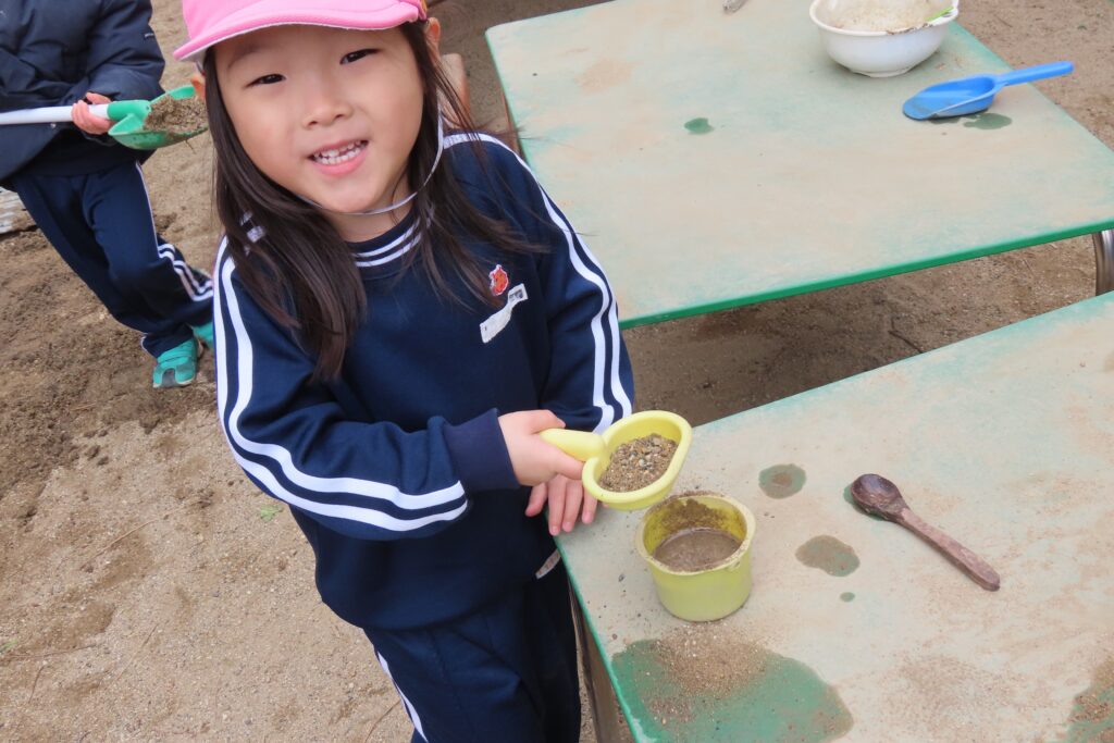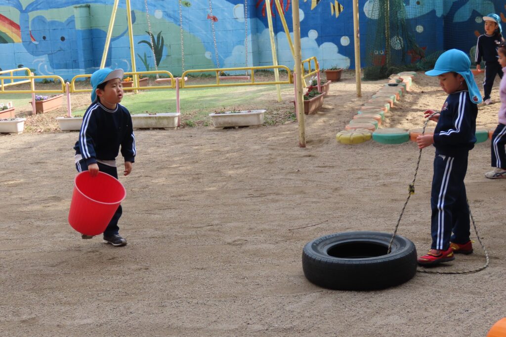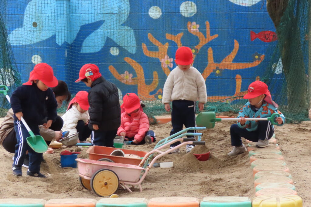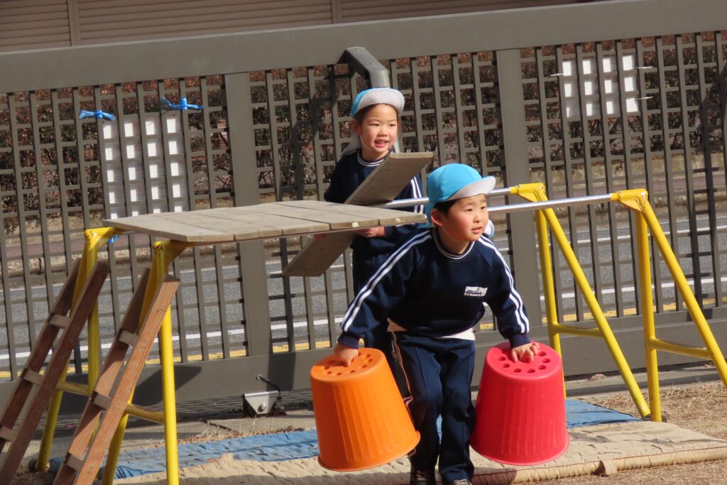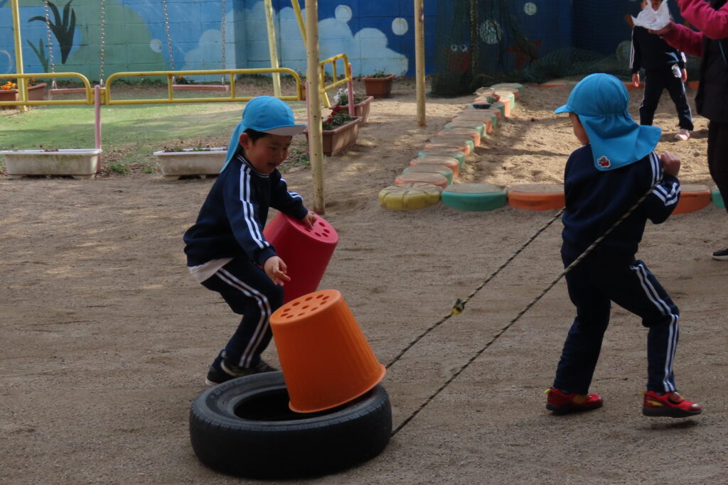 年中「ほし組」さんの園庭での一コマです。自分のやりたいことが友達のやりたいことと違うと「・・・」ということもありますが、そんな経験を通して友だちとの関係も深まっていきます。