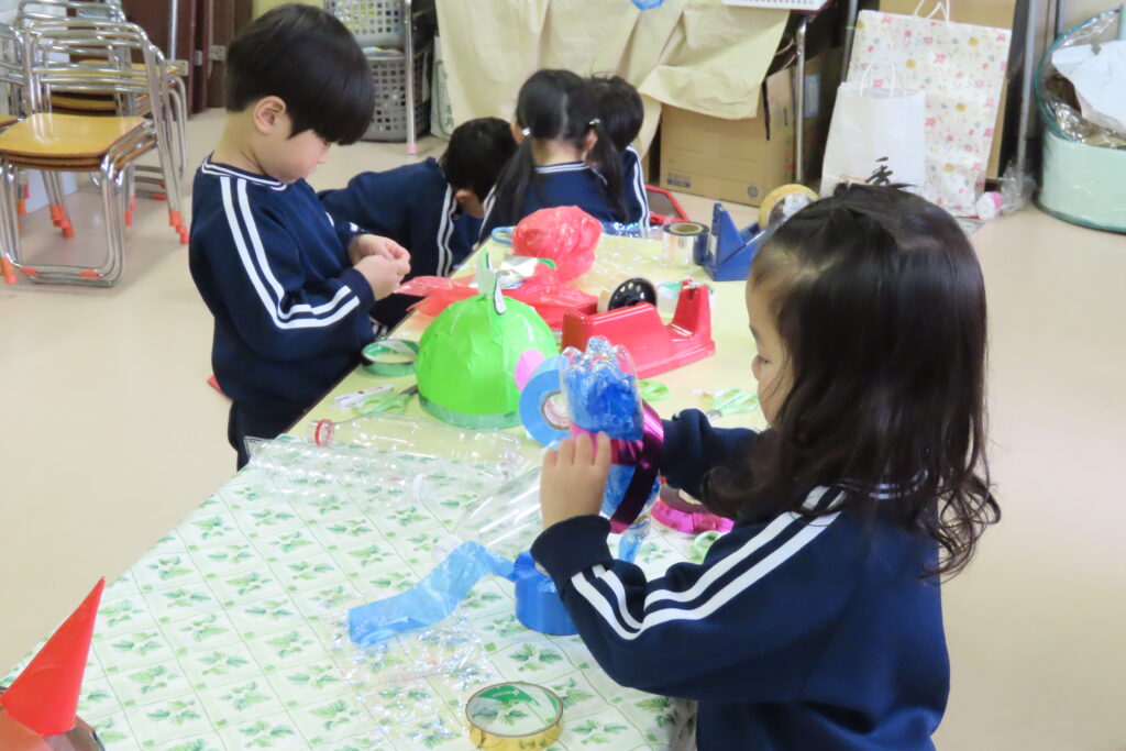 2月21日(土)の生活発表会まで、あと1週間余りとなりました。子どもたちの劇や合奏の練習と劇で使う製作と、いよいよ熱が入ってきました。そんな子どもたちの様子を少し、ご紹介します。
