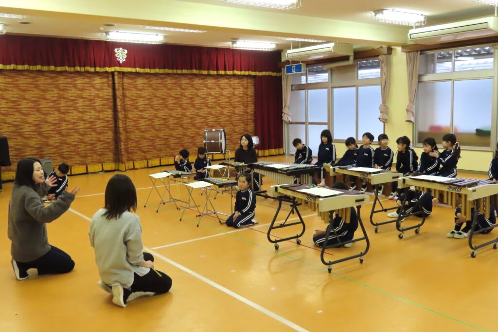 年長「つき組」さんは遊戯室で歌と合奏の練習です。まだh合評会の1週間前ですが、結構仕上がってきていました。「つき組」さんは幼稚園最後の生活発表会です。クラスで団結して、いい思い出を残そうね!
