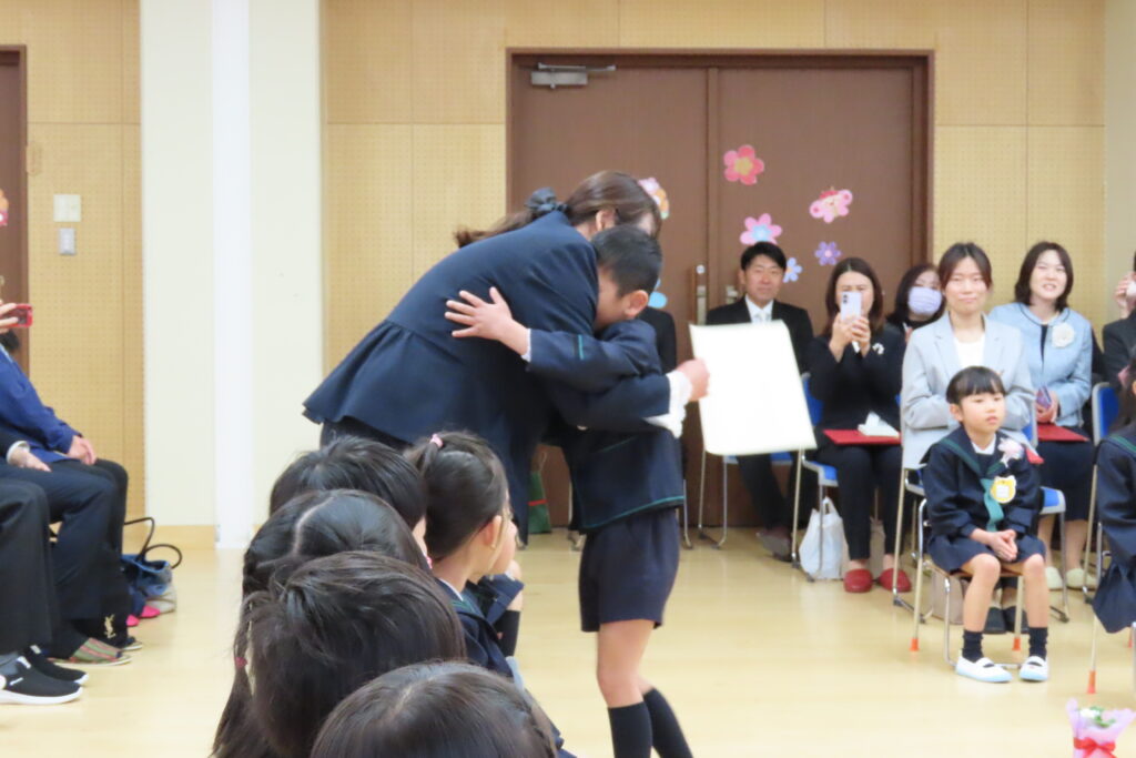 今年は、切りのいい2001番からのスタートです。どの子もみんなしっかりと顔をあげ、私の目を見て証書を受け取ってくれました。「ありがとう」の言葉も、お家の方への感謝の気持ちも、照れずにしっかりと伝えることができました。お家の人からは、ギューしてもらえて、よかったね。(この場面では、数人、照れて逃げる子もいましたが…。)