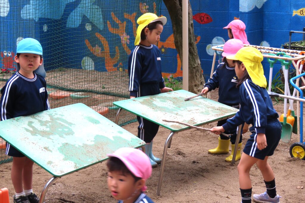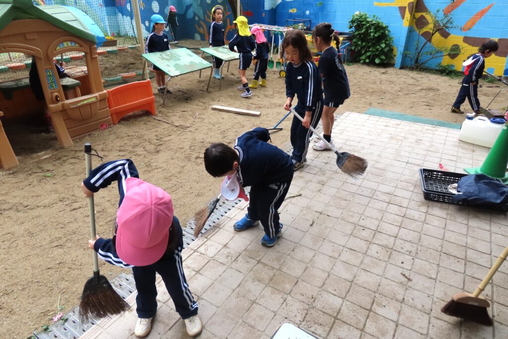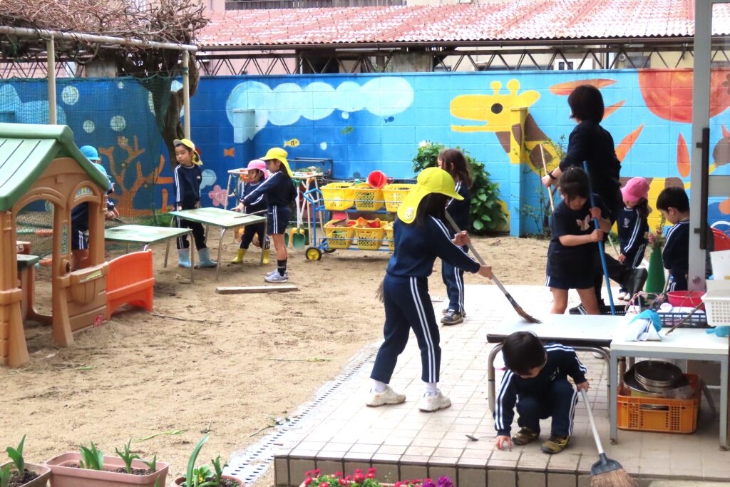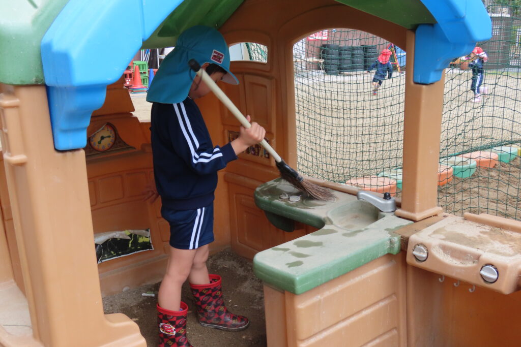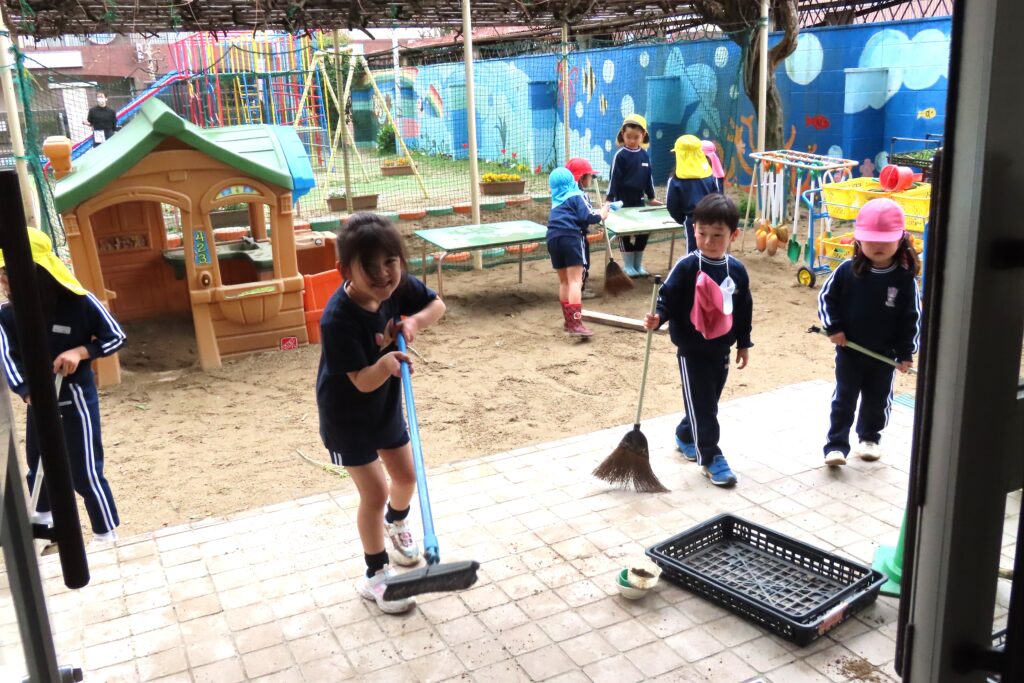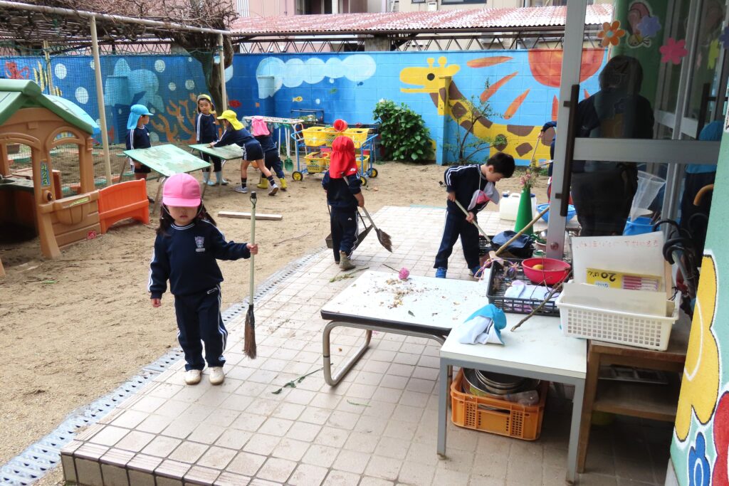 今日は今年度最後の日。長期預かり日でしたが、たくさんのお友だちが来てくれました。あいにくの天気で、園庭で遊ぶことはできませんでしたが、みんなで一年間お世話になったところを掃除してくれました。