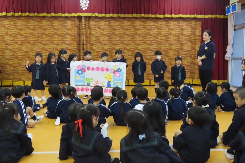 今日から、新年度が始まります。朝一番に遊戯室に集まって令和8年度の始園式を行いました。
