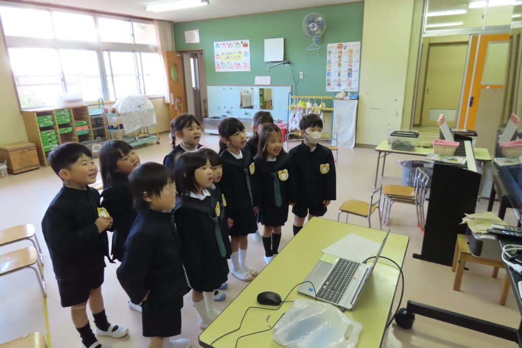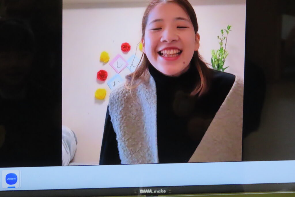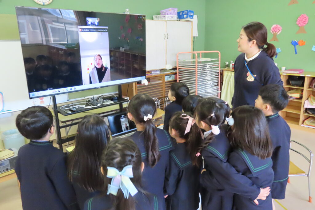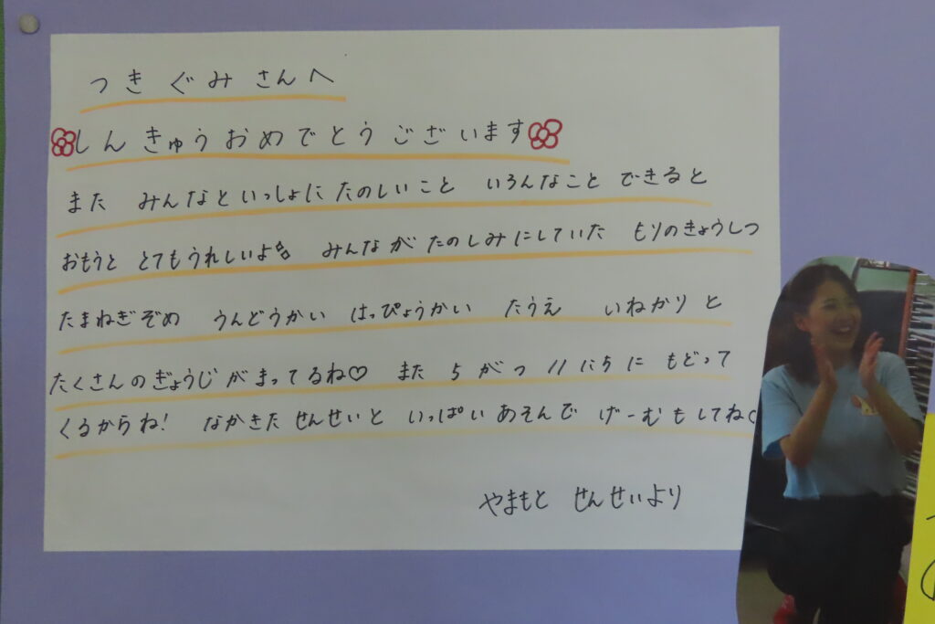 その「つき組」さんは、今日はZoomで山本先生とお話もしまいた。元気そうでよかったね。山本先生の後ろには、「しんきゅう おめでとう」の文字も(見えませんが…)。