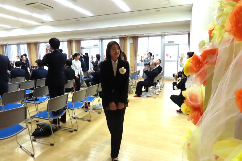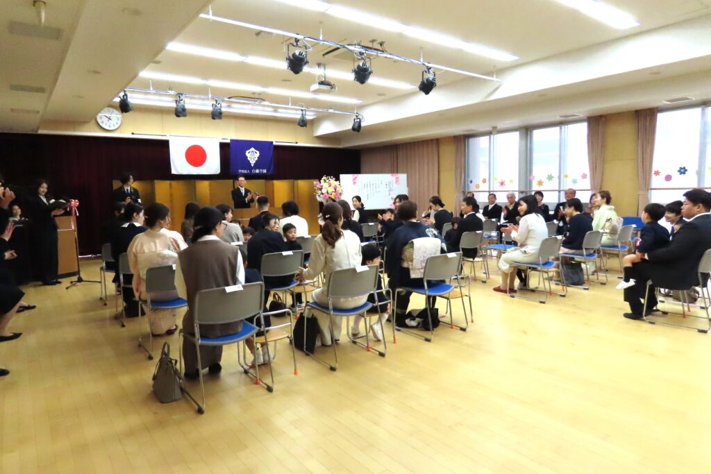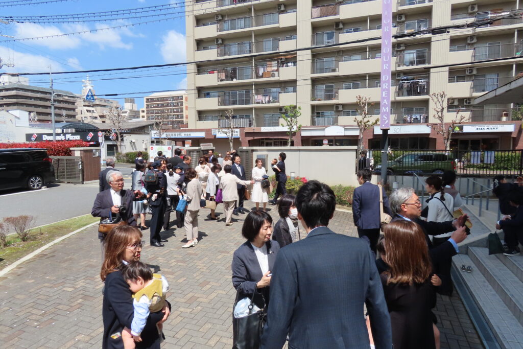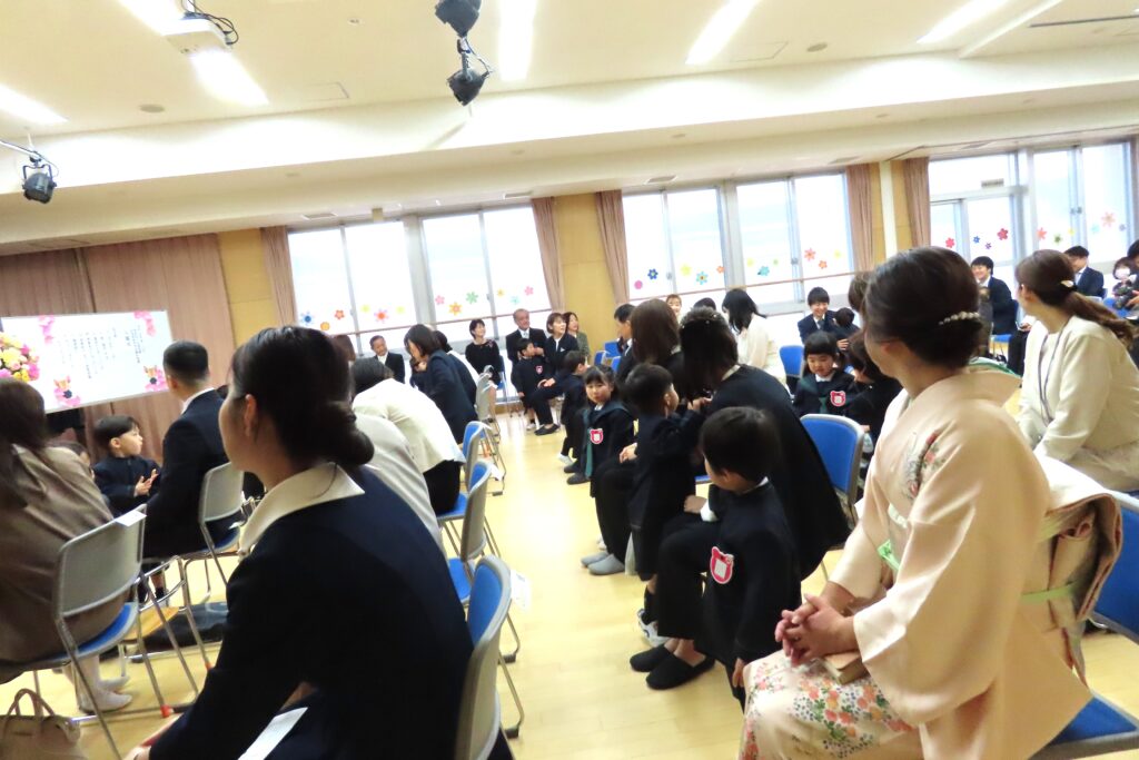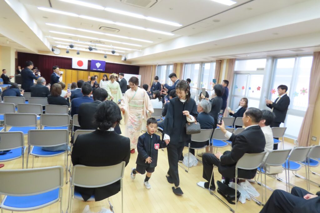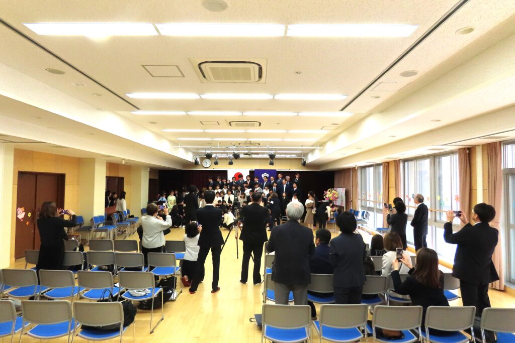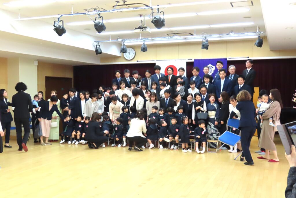 式の後はみんなで記念写真。保護者の皆様は子どもたちといっしょに…。写真屋さんの後ろからは式に出席くださった祖父母の皆様が撮影を…。