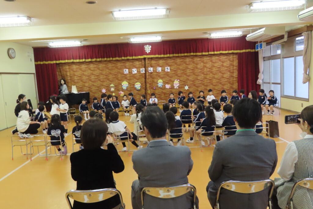 最後は、年中さんと年長さんから新入園児のお友だちにプレゼント。喜んでもらえたかな?