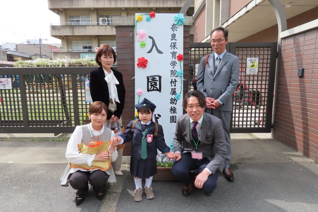 入園式にご参加できなかったお子様は、今日、門のところで記念写真も撮っていただきました。