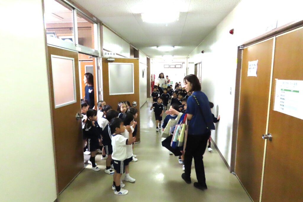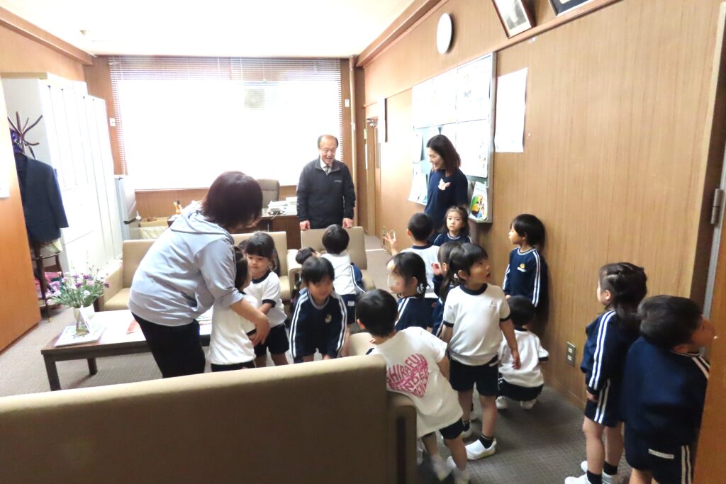 理事長室から出てくると、ちょうど絵本を借りて帰ってきた年少「さくら組」さんとバッタリと…。「さくら組」さんの様子は、昨日のブログにアップしています。