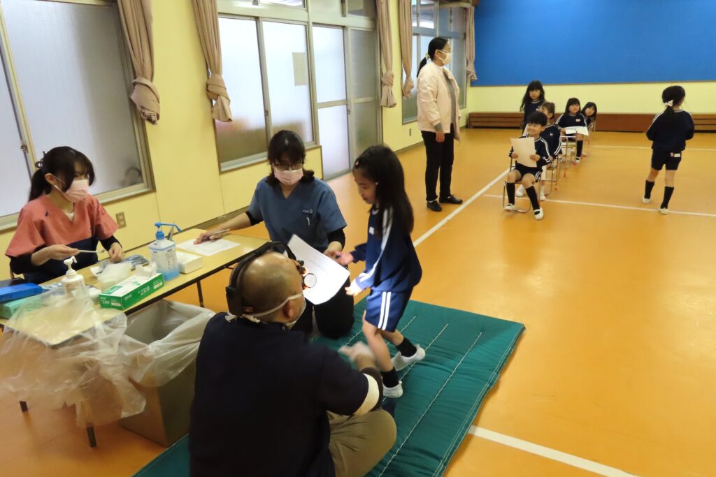 今日は歯科検診の日。年少さん → 年長さん → 年中さん の順番で歯科医さんに診ていただきました。
