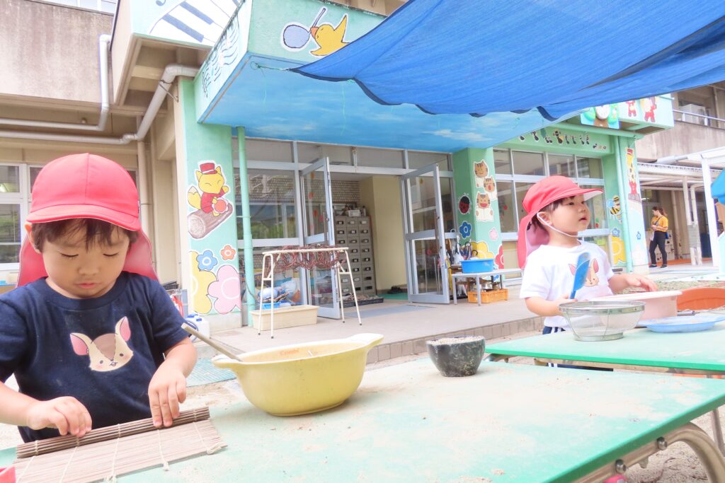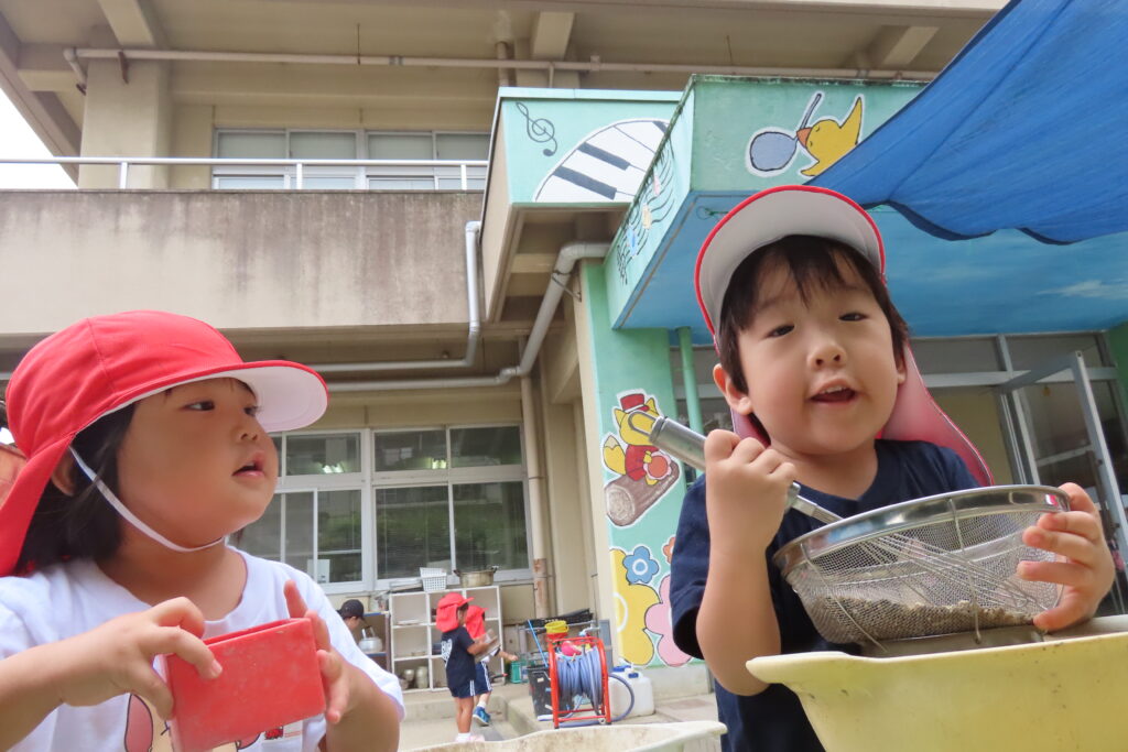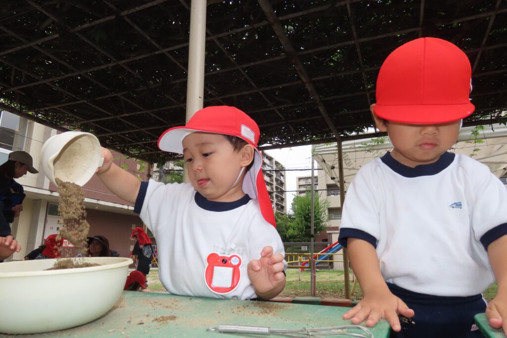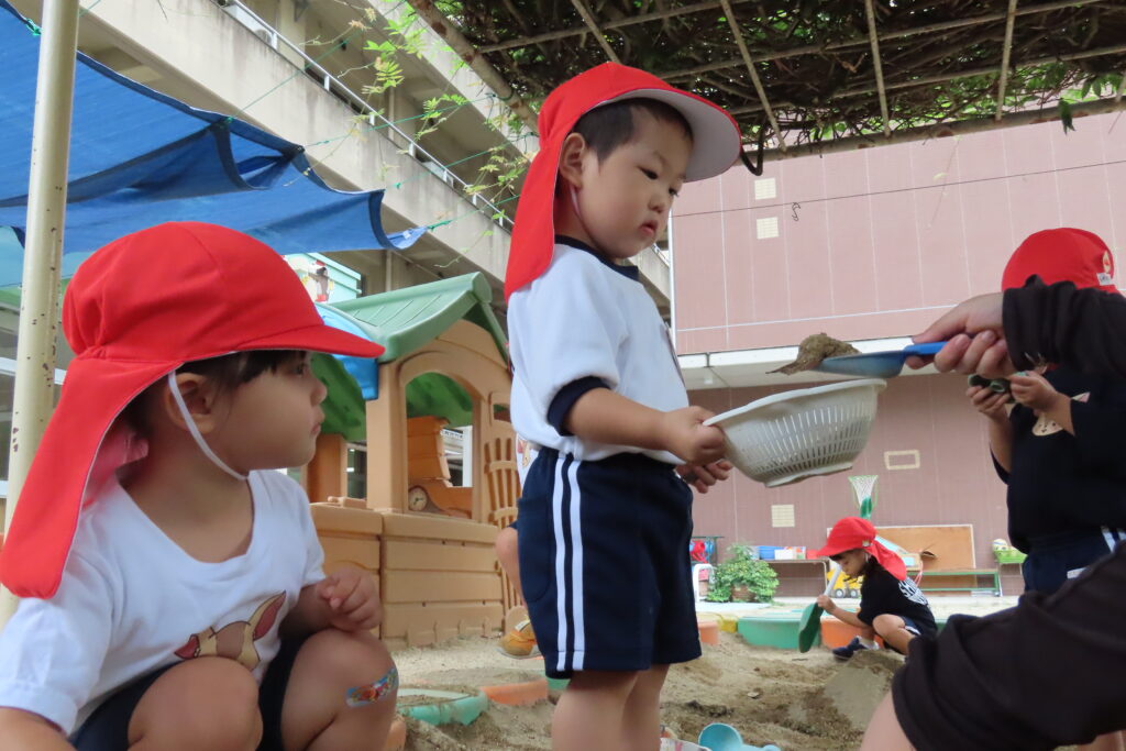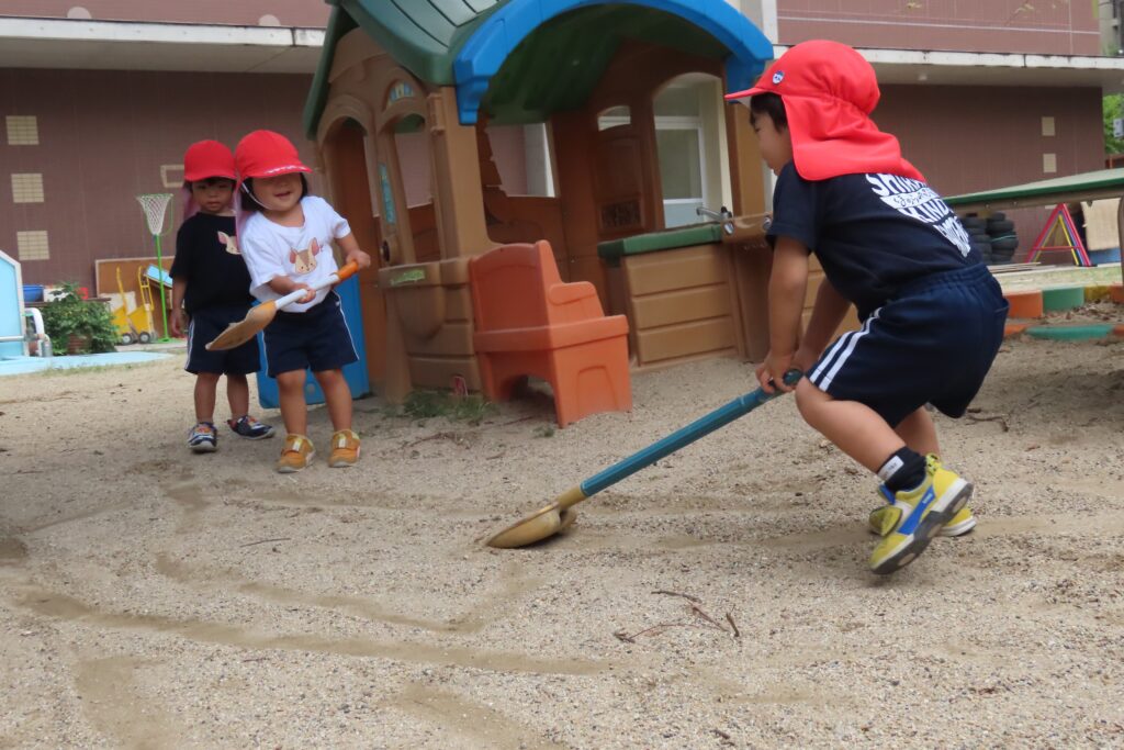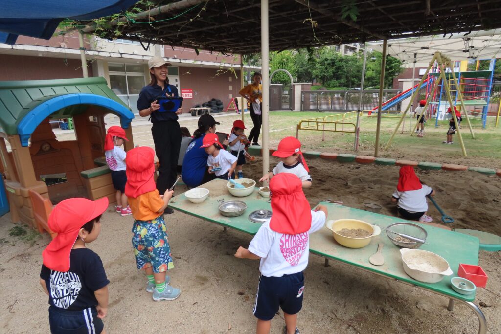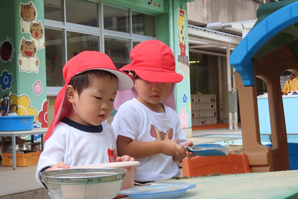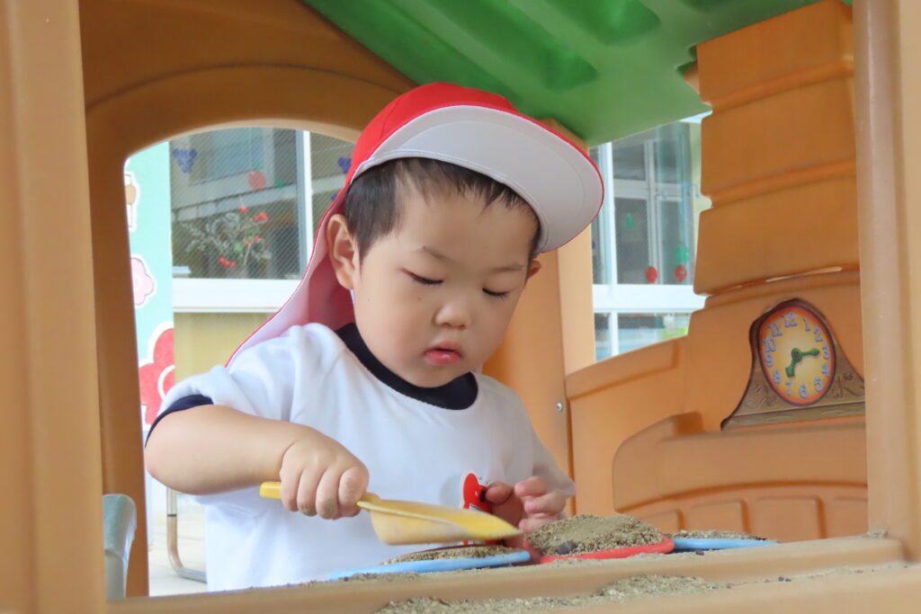 子どもが一番好きなのは砂遊び。スコップを使って地面に線路をつくったり砂でお料理したり…。子どもたちが遊びに夢中になっている様子をご紹介します。
