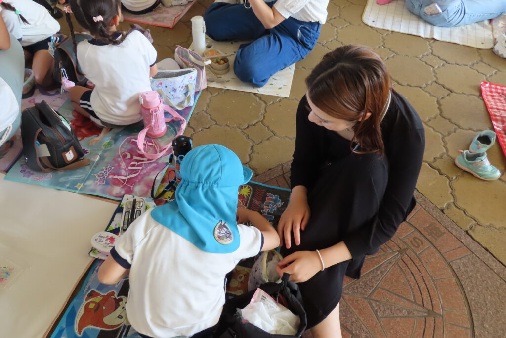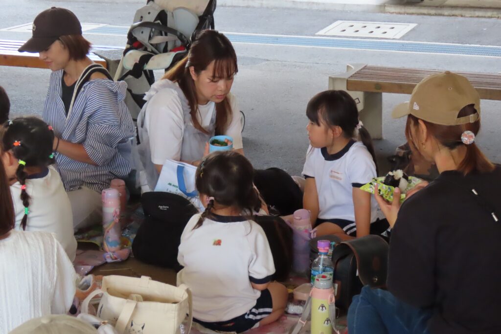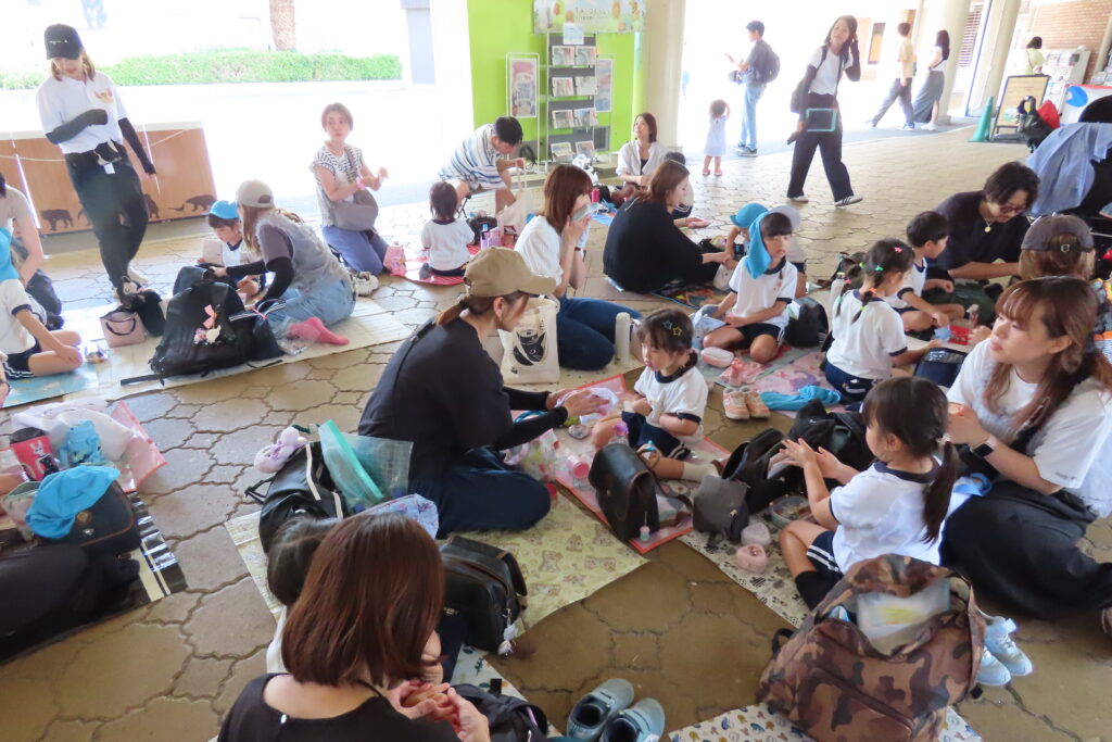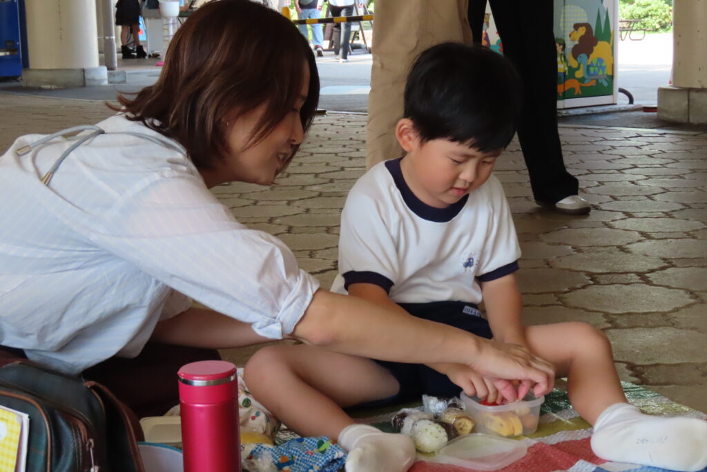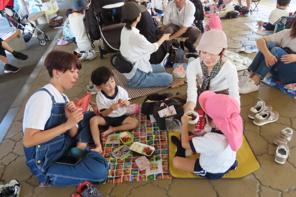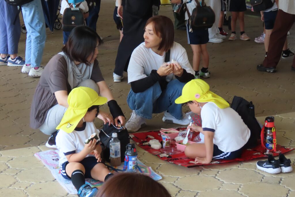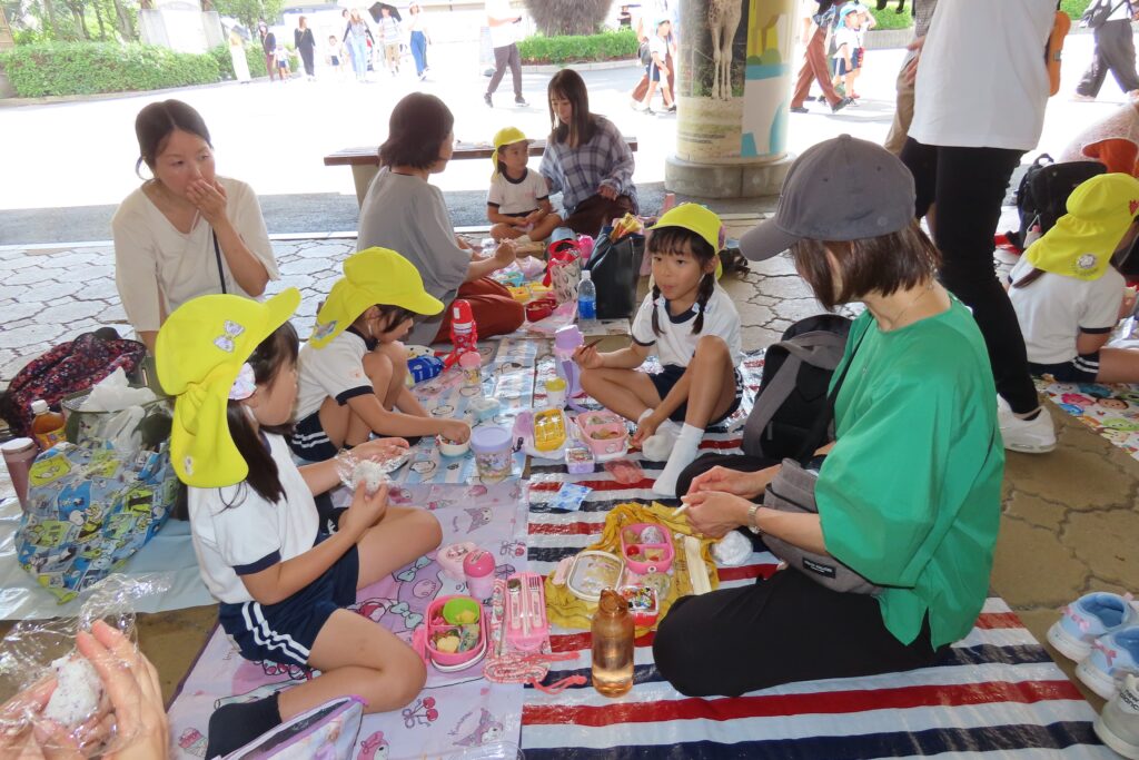 昼食は、クラスごとに「いただきま~す。」。食べ終わった親子から自由行動です。親子遠足は令和4年以来ですので「全クラスそろって親子でお弁当」は今の園児たちは初めての経験です。その楽しそうに食べている様子もクラスごとにご紹介します。