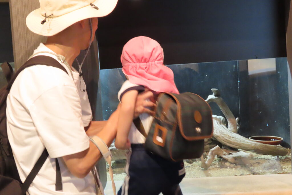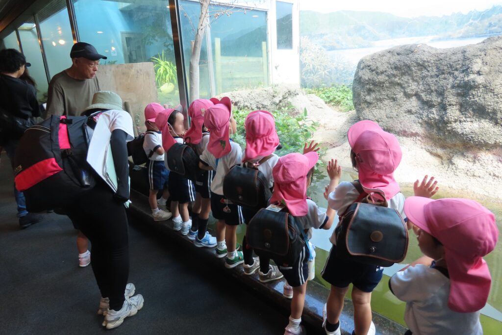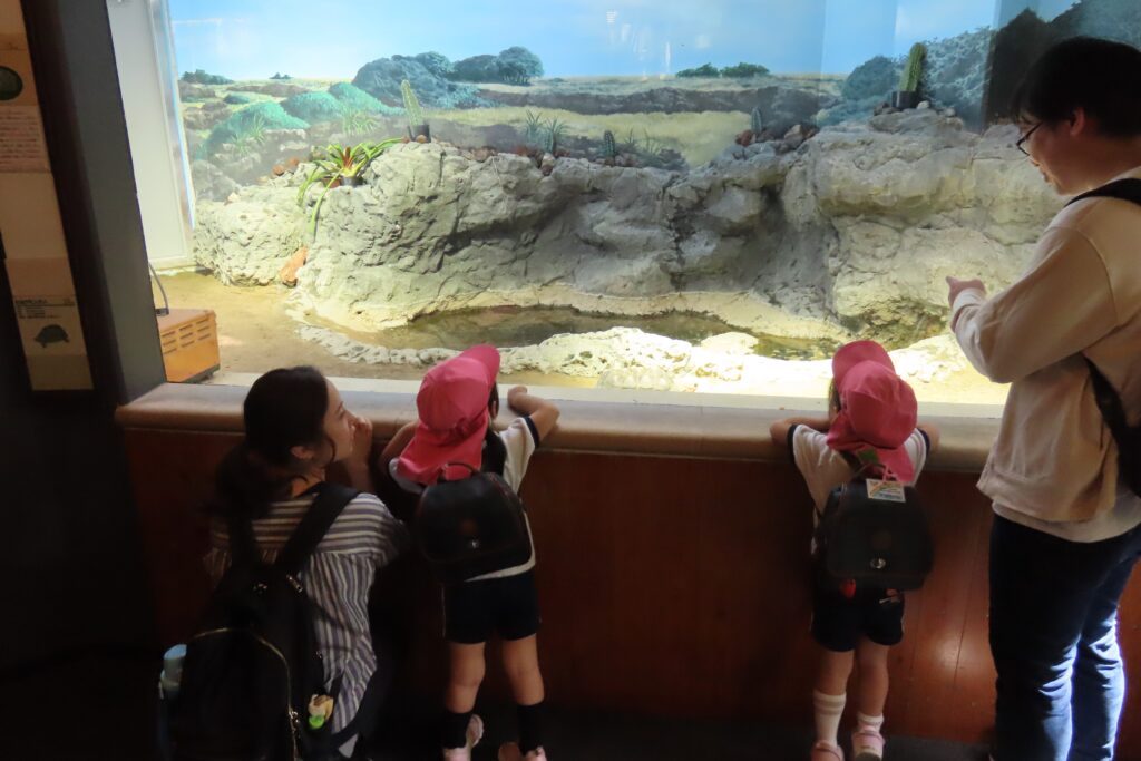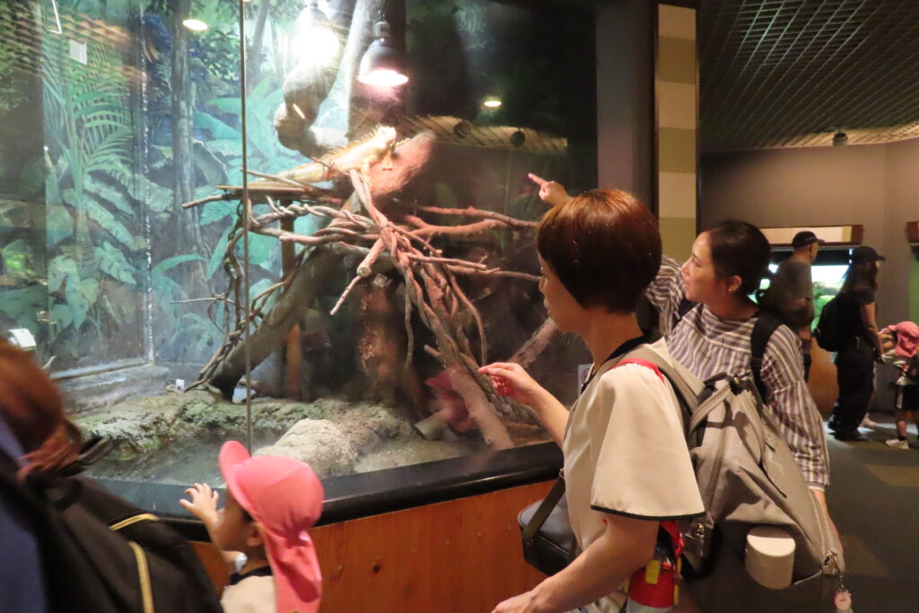 さくら組さんのお目当ての一つは「へび」。ということで、結構時間をしっかりとって爬虫類生態館アイファー(IFAR)の中で観察を…。昼食場所に戻ってきたのは年少さんが最後になりました。
