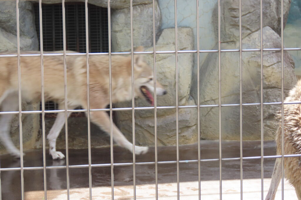 お目当てのオオカミのところでは、「ウォ~ォ~~」と遠吠えをしながらオオカミの動きを観察していました。
